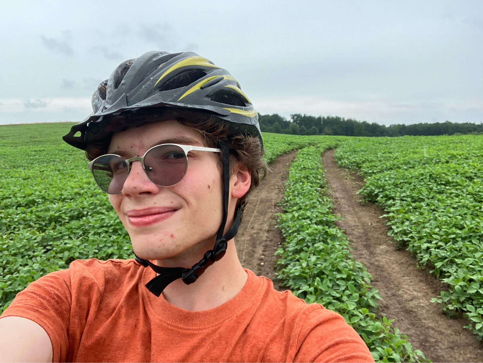 A dirt road with a small uphill (section from east to west between two straight lines). Be careful, because the center of the path is overgrown with grass in some places and you can accidentally get your wheel stuck in a rut when switching from one track to another. Beautiful views all around, sometimes there are pits and large stones