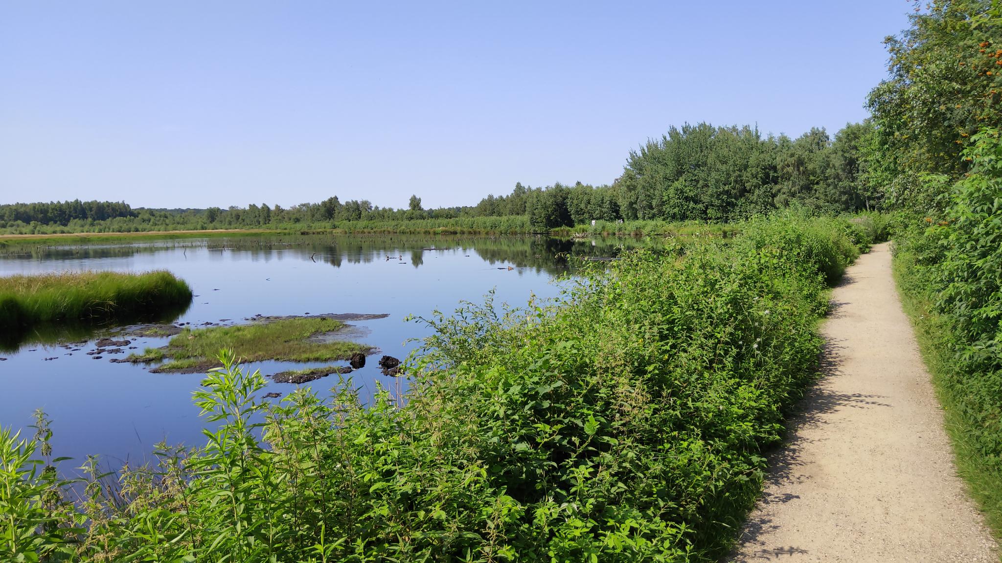 Himmelmoorループトレイルは、シュレースヴィヒ=ホルシュタイン州最大の高層湿原であるHimmelmoorを探索します。このトレイルには、柔らかい泥炭土の上に架けられた木道を含む、約2.5マイル(4キロメートル)の自然道があります。再生された湿地とカバノキの森を体験する機会を提供します。