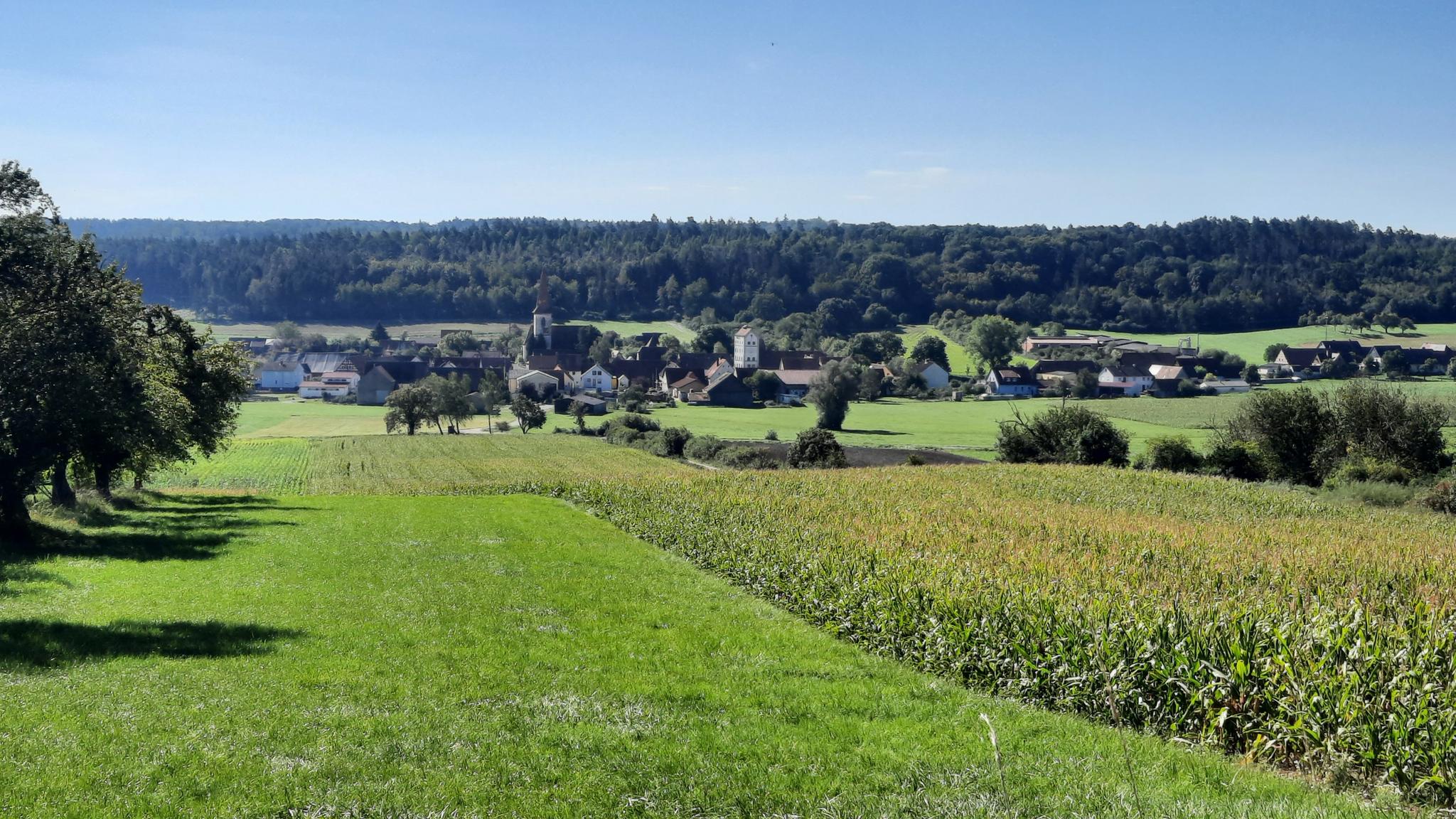 Weihenzellのトレイルは、なだらかな丘陵、変化に富んだ地形、森林地帯が特徴の風景を横断します。小さな小川が谷を流れ、Naturpark Frankenhöhe内で開けた景色と自然のモニュメントが融合しています。