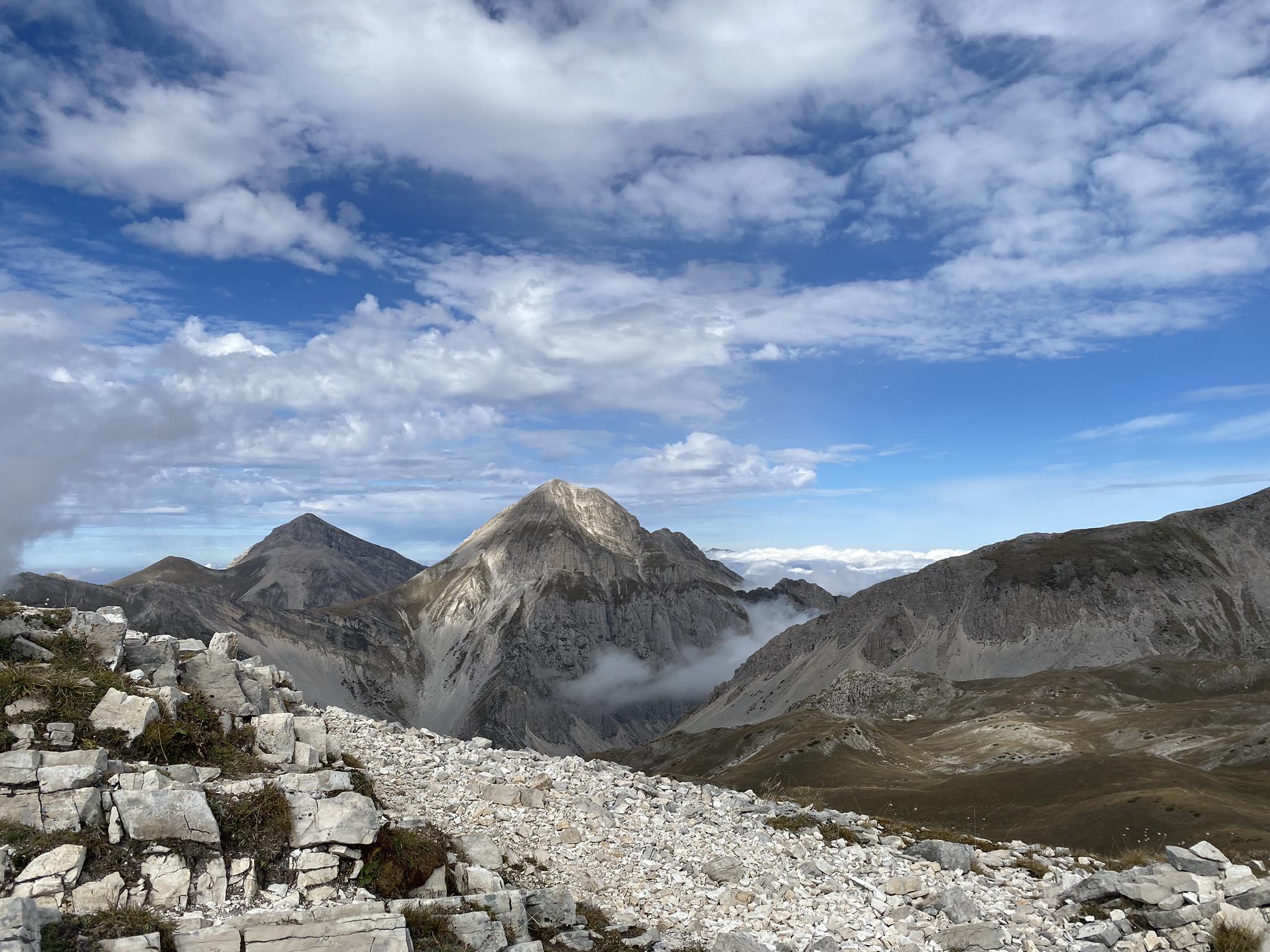 公園の最高峰は、グラン・サッソ山塊にあるコルノ・グランデです。標高は9,554フィート(2,912メートル)に達します。カンポ・インペラトーレからのコルノ・グランデ(グラン・サッソ)のような山頂へのルートは、経験豊富なハイカー向けに用意されています。