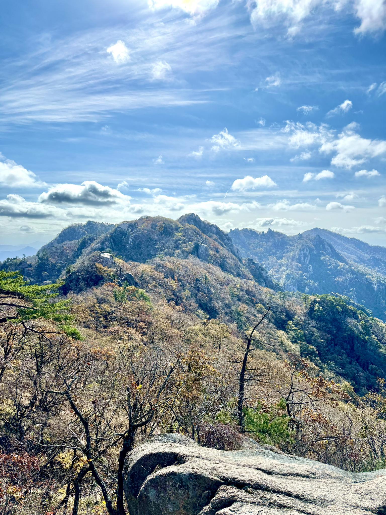 小白山脈は一年を通して魅力的な美しさを見せてくれます。春は鮮やかな野草とロイヤルツツジで知られ、秋は色鮮やかな紅葉が特徴です。冬は雪景色に変わり、異なるアウトドア体験を提供します。