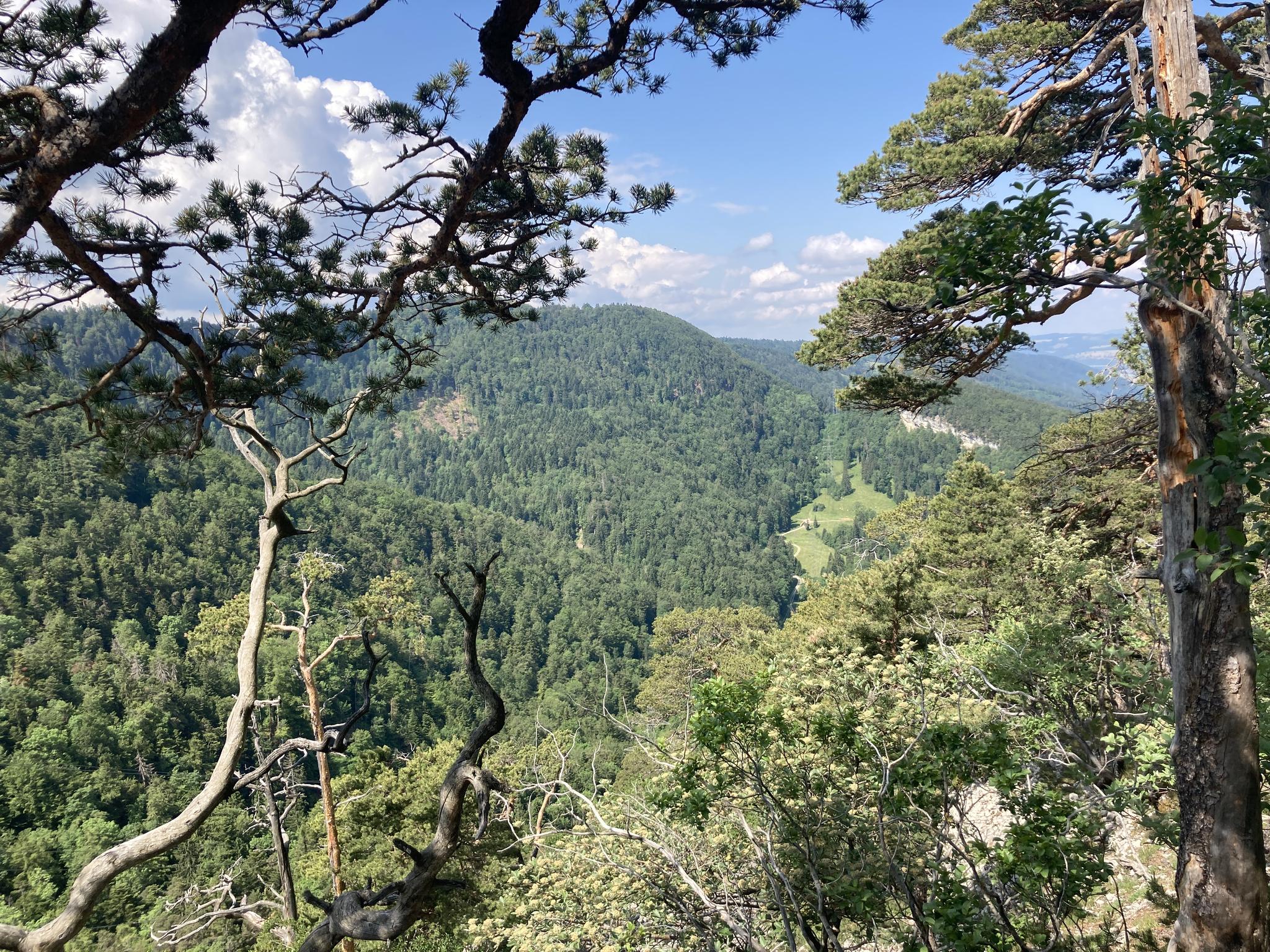 Courtételle周辺のジュラ地域は、多様な自然の美しさで知られています。特徴としては、鬱蒼とした森林、開けた牧草地、岩だらけの斜面、古代の川によって形成された峡谷などがあります。多くのルート沿いには、谷や山のパノラマビューが一般的です。