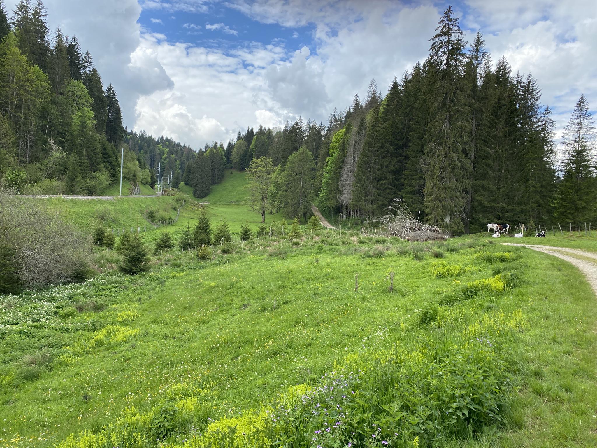 Saulcy地域は、森林に覆われた高地、開けた牧草地、川の谷が混在する景観が特徴です。この多様な地形は、挑戦的な登り坂と、よりのんびりとした探索路の両方を提供します。