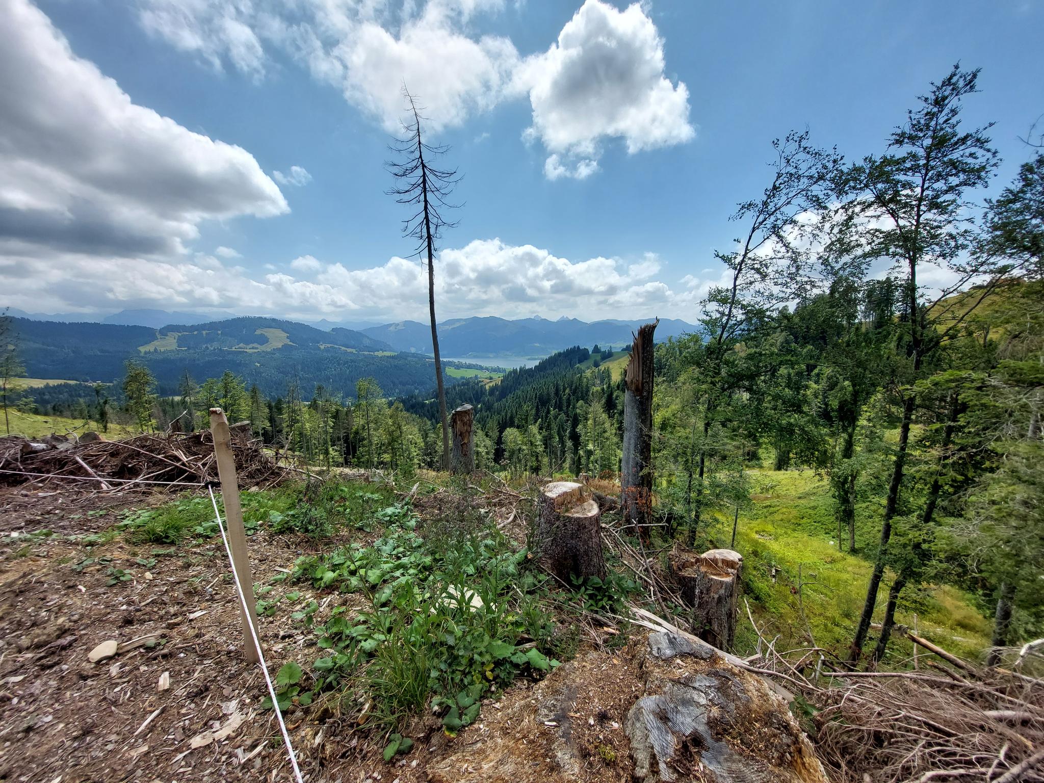 Sihlsee地域は、スイス最大の人工湖、広大な湿地帯、豊かな牧草地が特徴です。Ybrig山脈を含む印象的な山々の背景があり、Säntis、Speer、Glarusアルプスのような遠くの山々、そしてチューリッヒ湖やGreifensee湖の景色まで広がるパノラマビューが楽しめます。