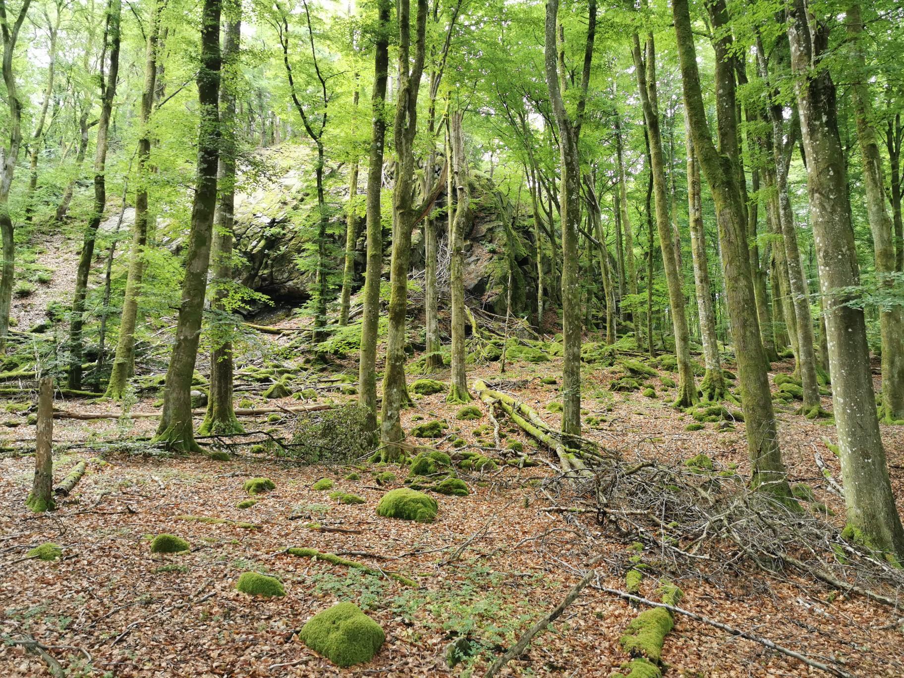 Mäsenは、鬱蒼とした森、開けた牧草地、水路が混在する多様な自然景観が特徴です。地形には、なだらかな森林地帯や河川の谷が含まれ、一部には露出した岩場もあります。