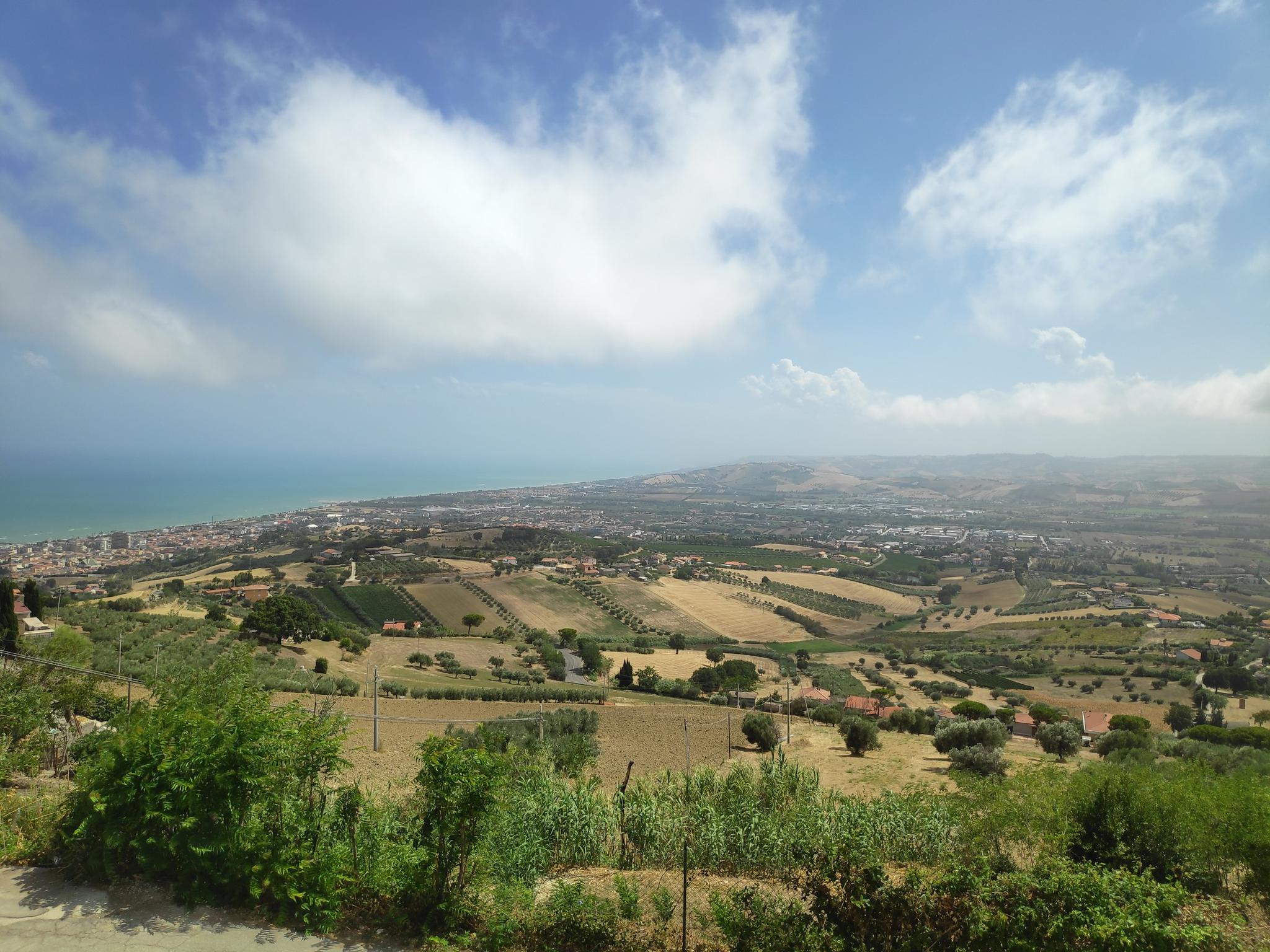 モッロ・ドーロは、緑豊かな丘陵、ブドウ畑、オリーブ畑が特徴です。その独特な地理的位置により、アドリア海からヴォマーノ渓谷、グラン・サッソの山頂まで見渡せます。この地域は海から約7マイル(12km)、山から約25マイル(40km)の距離にあります。