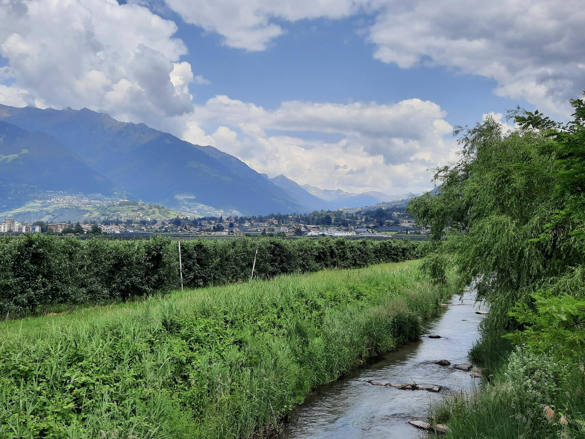 この地域は、広大な果樹園とブドウ畑が広がるアディジェ渓谷が特徴です。村は、モンテ・チョッグルの赤い斑岩を背景に位置しています。ハイカーにとっての自然のハイライトは、ヴィルピアーノにある高さ82メートルの滝です。