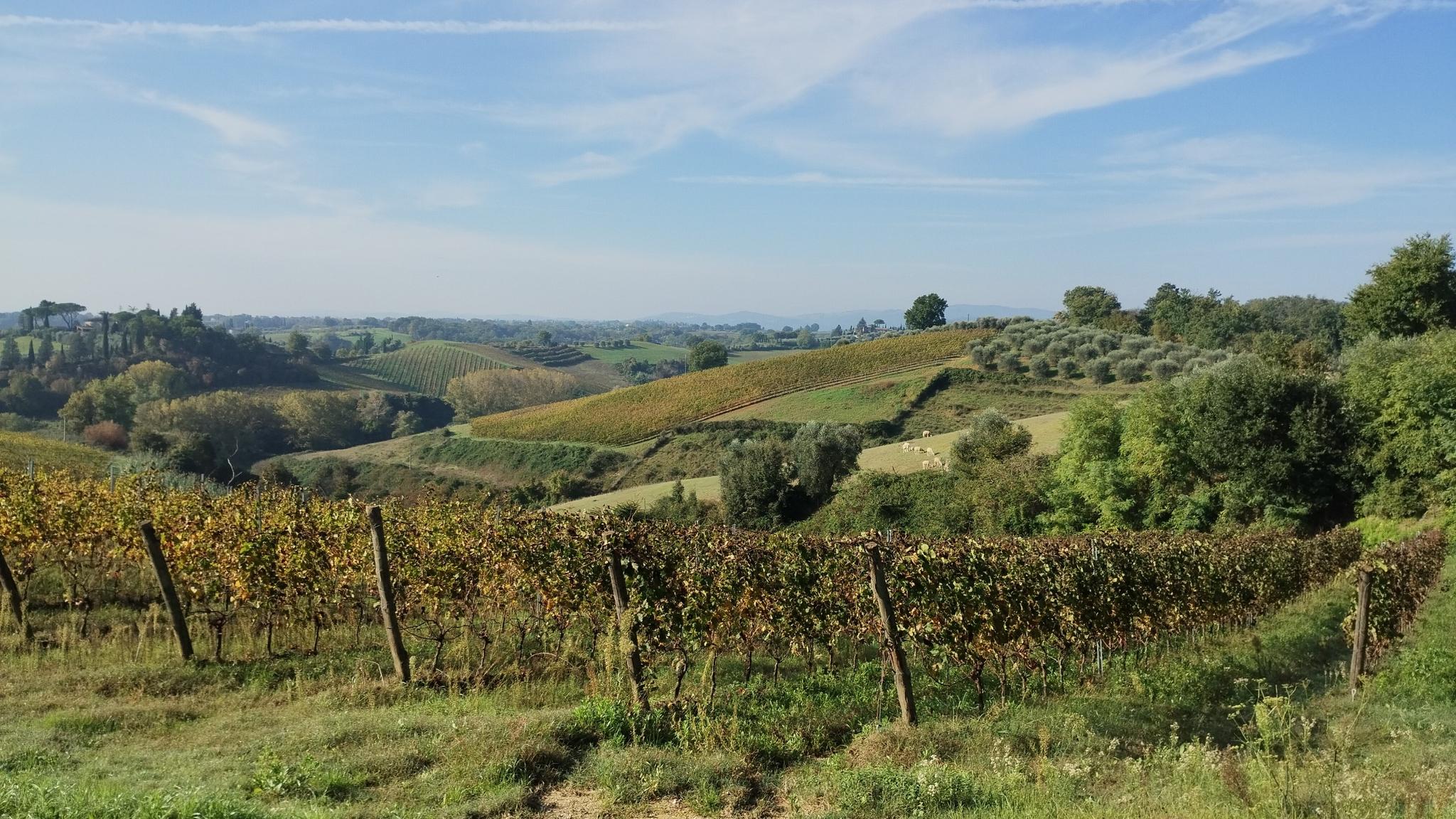 Poggibonsiのルートは、なだらかな丘陵、平坦な渓谷区間、舗装路、そして「strade bianche」(白い砂利道)など、さまざまな地形が特徴です。この多様性は、さまざまなスキルレベルやアクティビティの好みに対応します。景観には、ブドウ畑、オリーブ畑、森林も含まれます。
