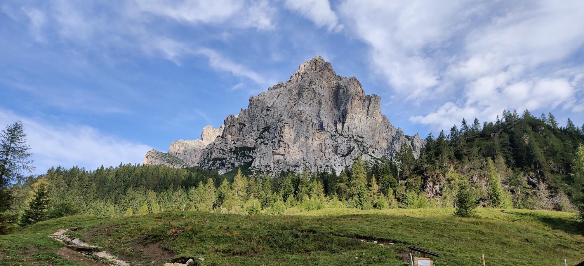 この地域は、標高3,220メートル(10,564フィート)のチヴェッタ山やペルモ山などの象徴的な山々に囲まれています。これらの山々は、周囲のドロミテの広大なパノラマビューを提供します。