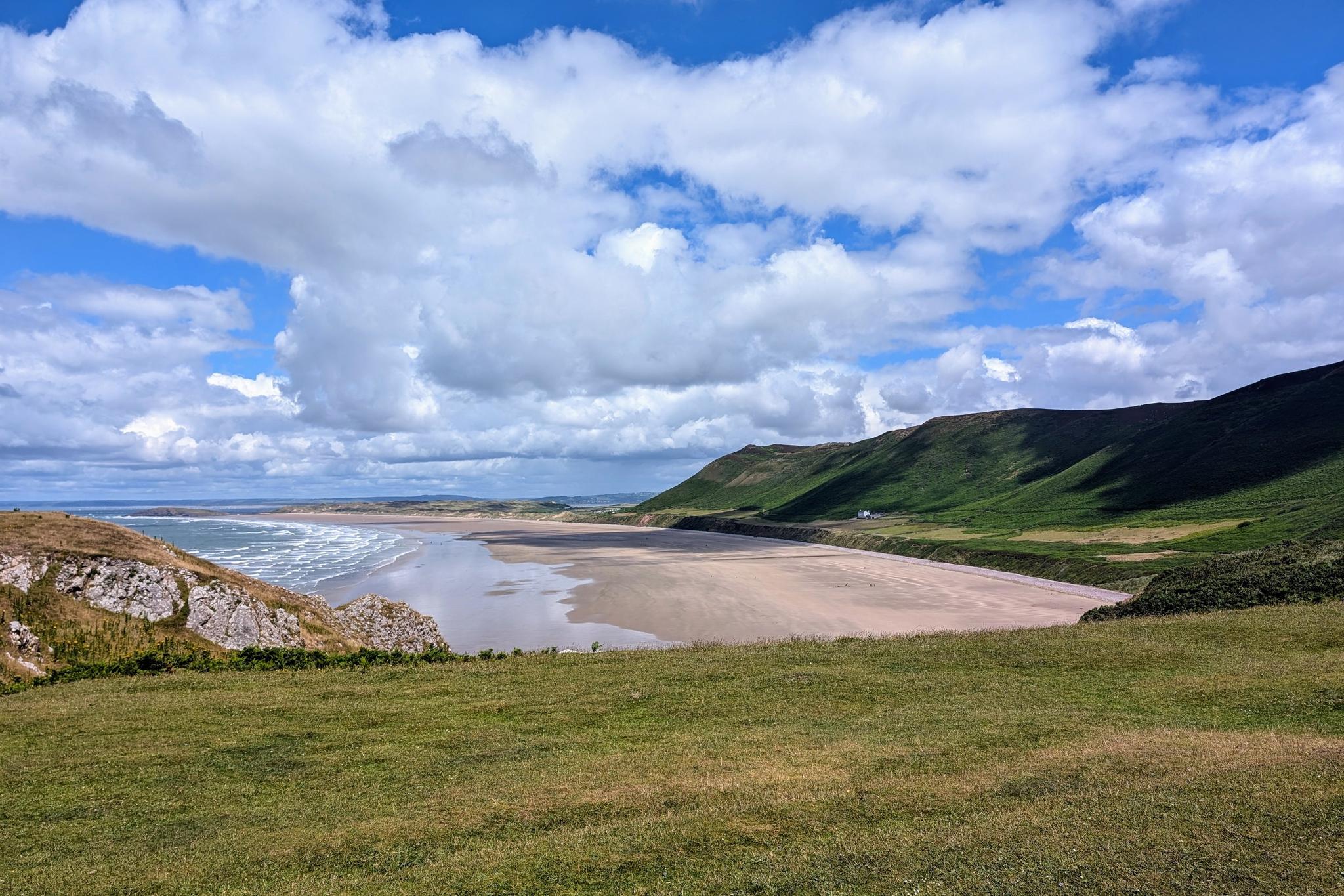 Rhossili Downsウォークは一般的に中程度とされています。Gower Peninsulaの最高地点への登りを含み、広大な景色を楽しめます。人気のルートは、ダウンズとRhossili Bayへの下りを組み合わせています。