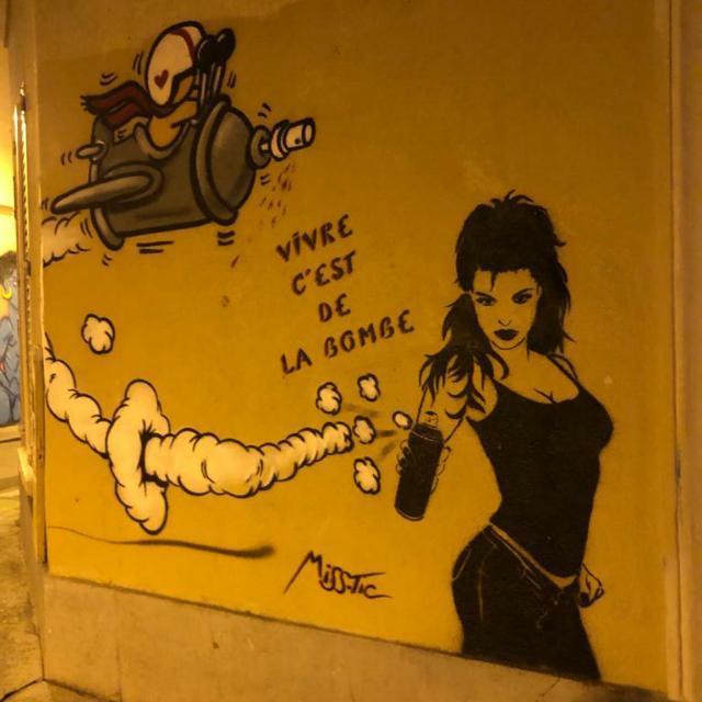A very well-executed optical illusion in which the real world and the painted world merge into one.