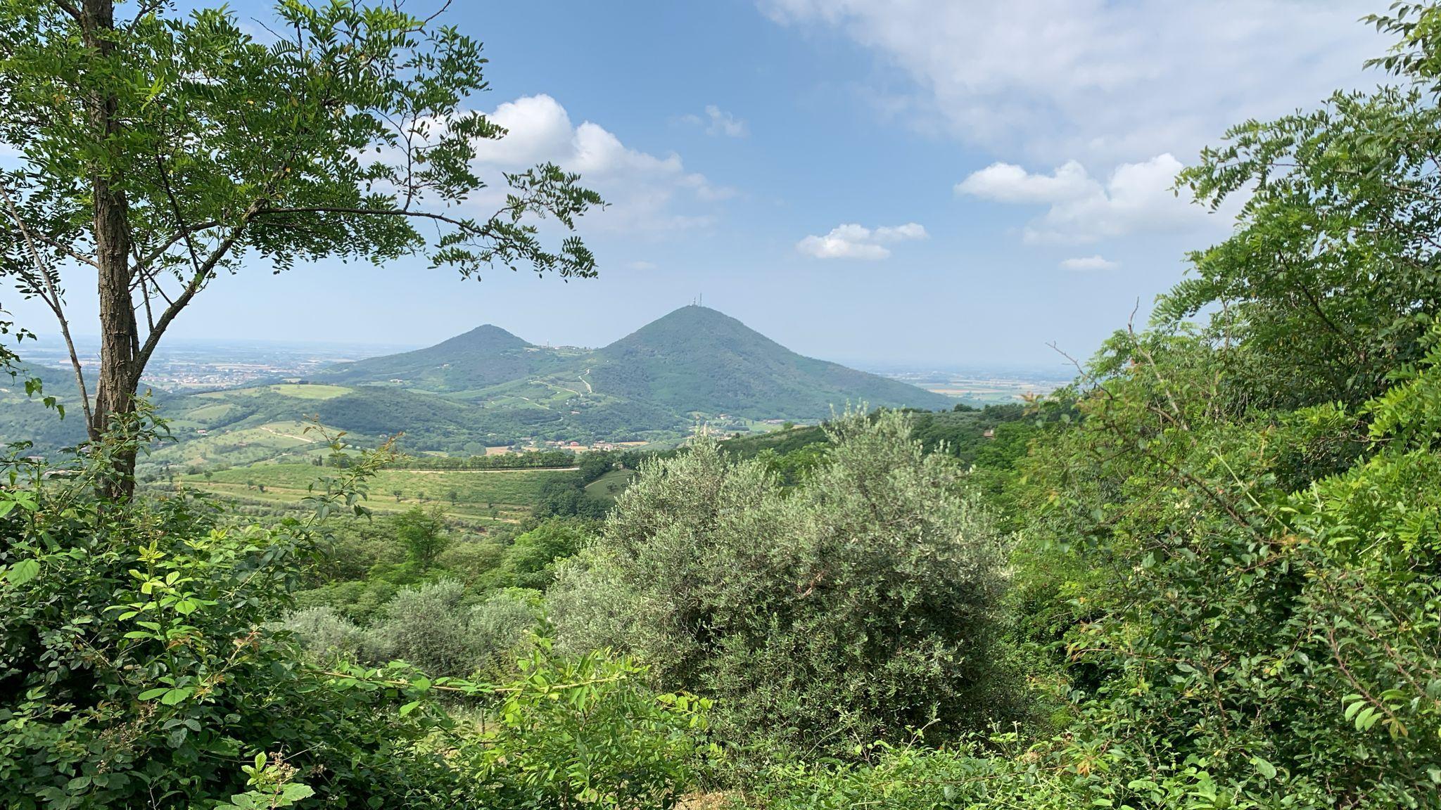 From this road that goes up Monte Grande you can enjoy a fantastic view of Teolo and the Euganean Hills.