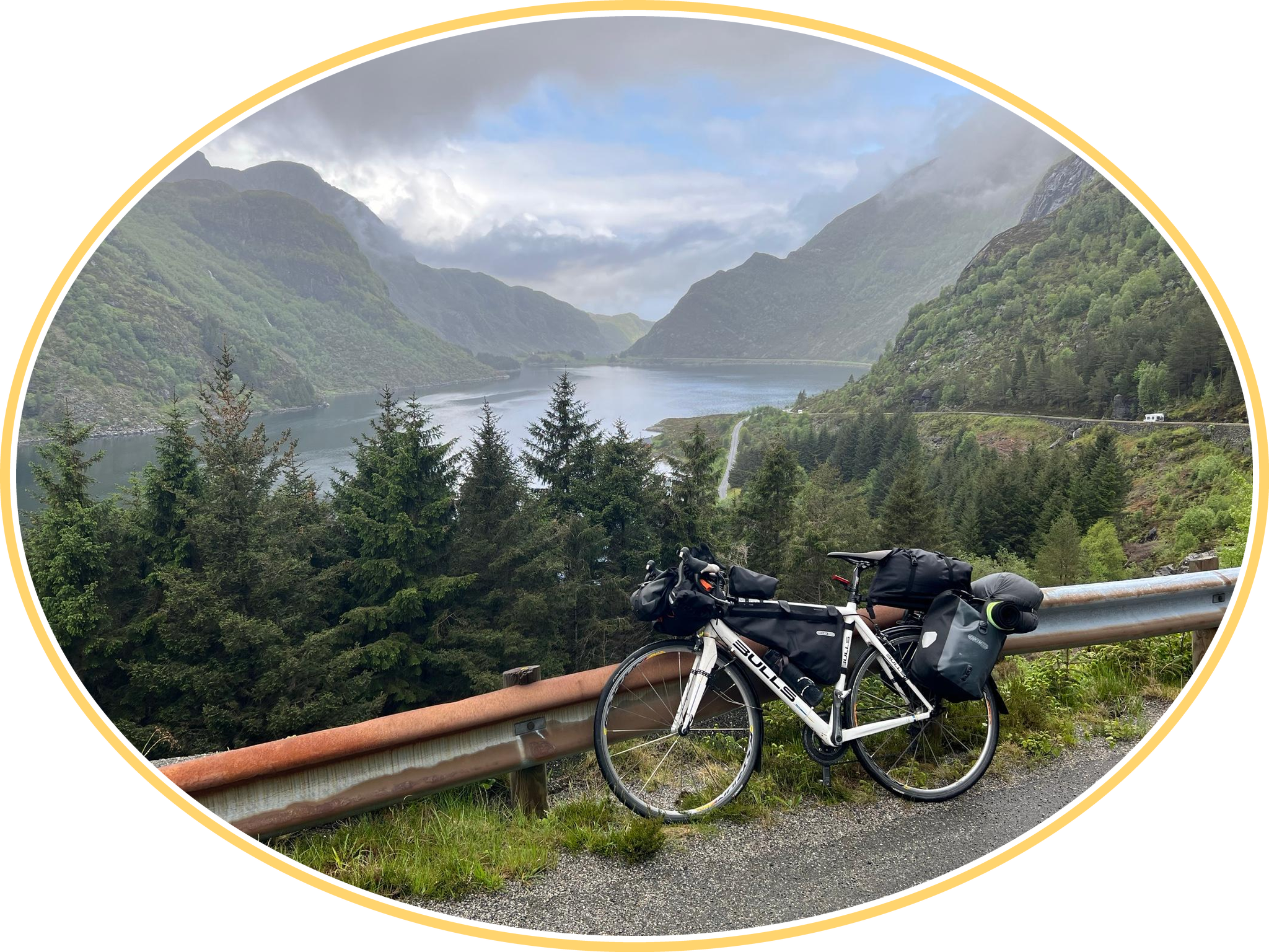 Narrow road very with very little traffic. Scenic views with yellow flowers in spring/summer.