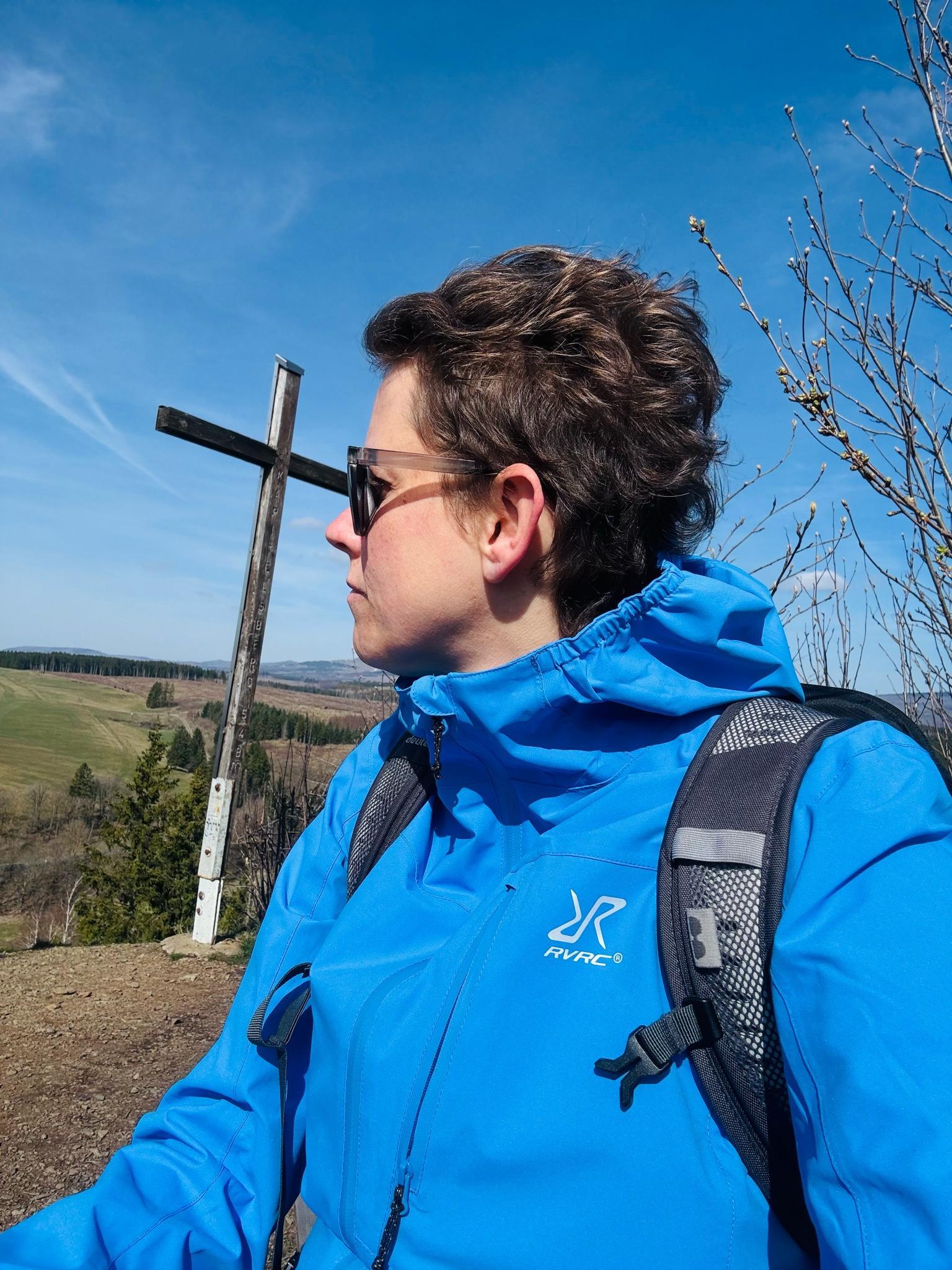 The Gegegensteine, an impressive rock face with a cross, can be climbed thanks to the stairs.