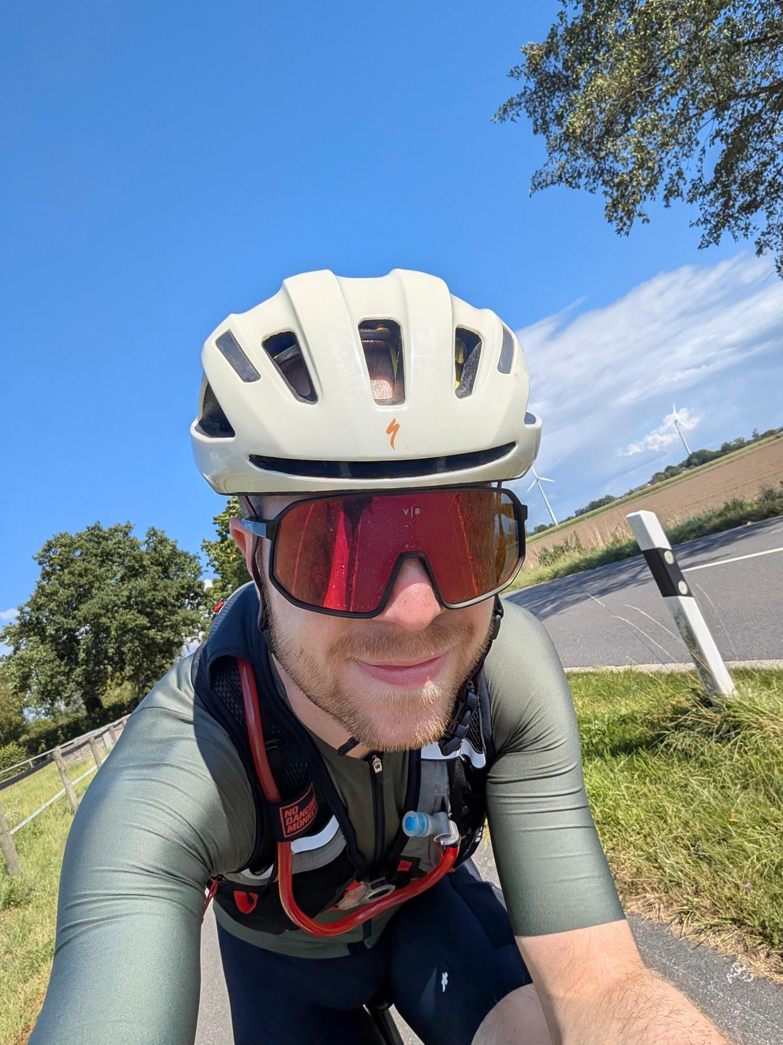 After leaving Götterswickerhamm from the direction of the church you come to the Dammstraße, which is a beautiful racing bike route parallel to the Rhine dyke.