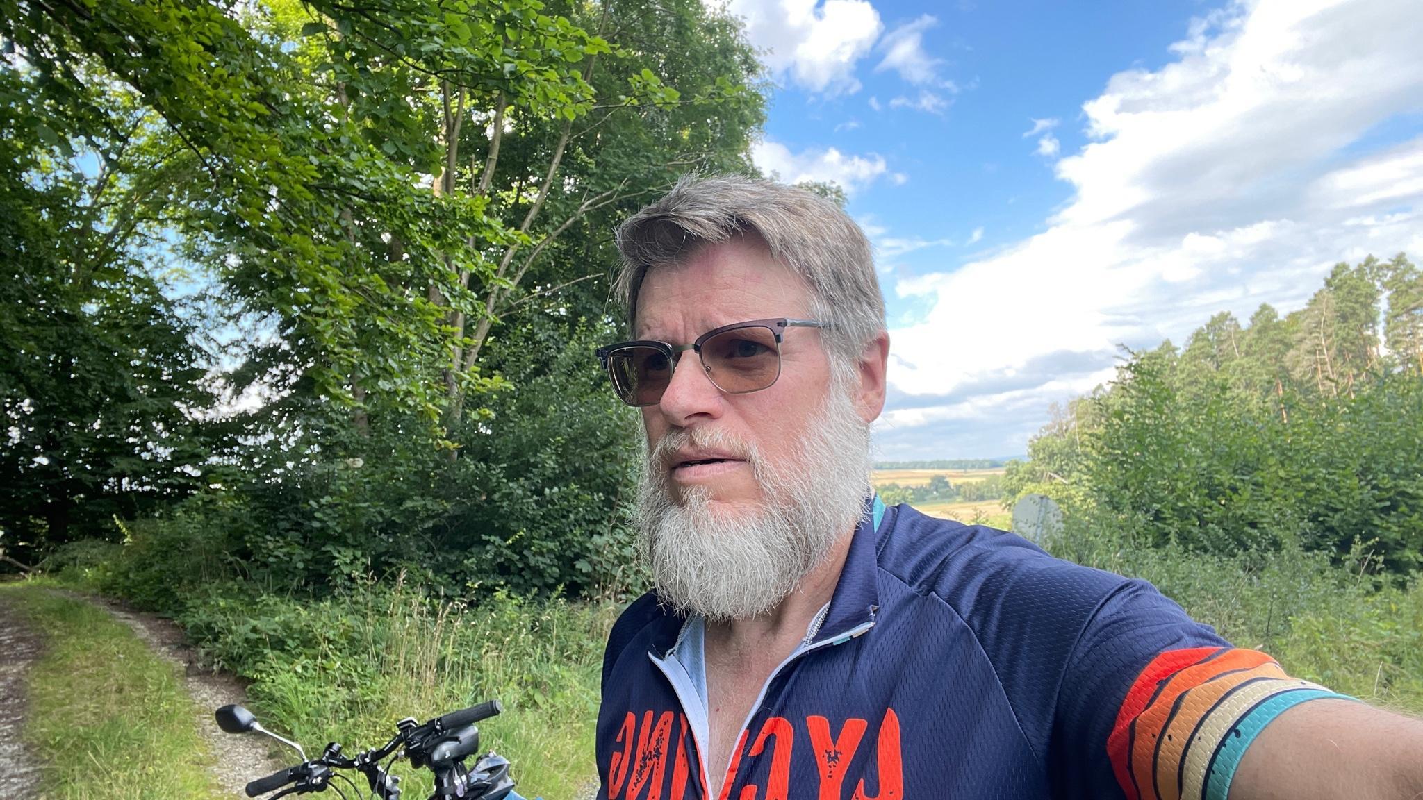 Beautiful relaxed bike path along the country road