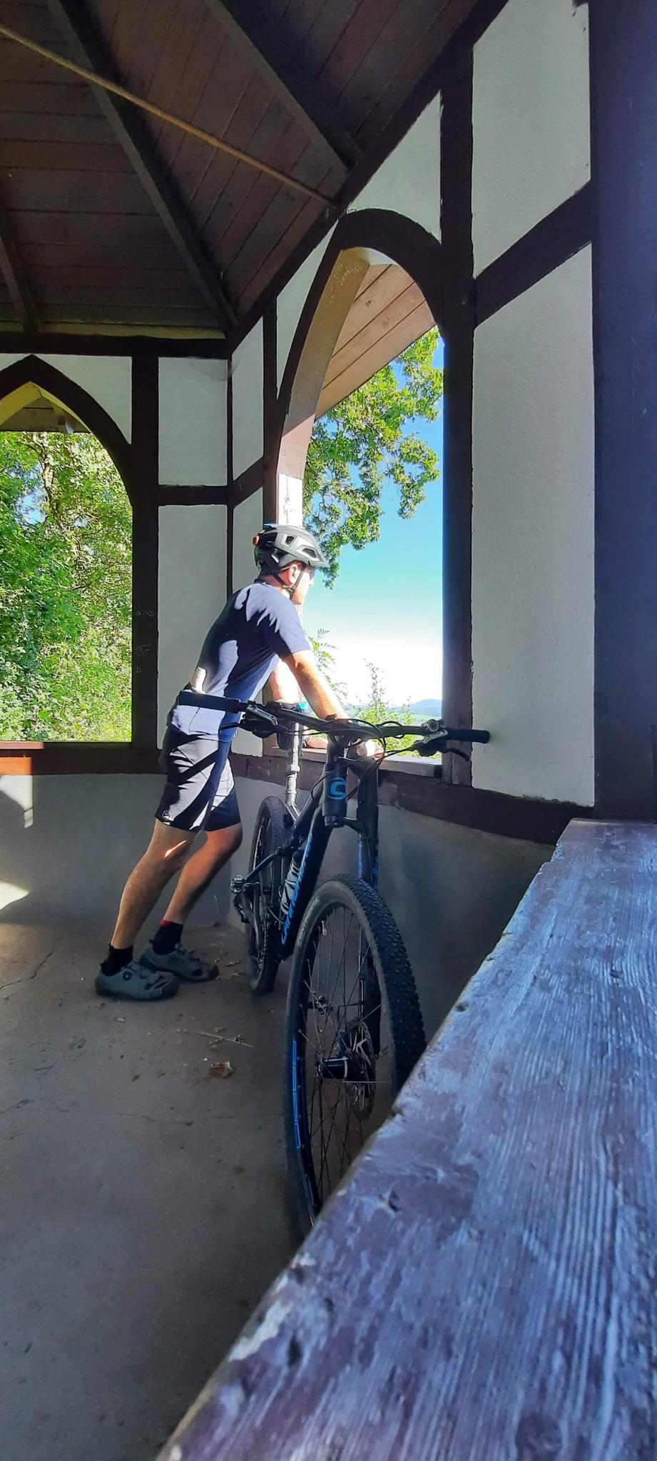 The climb was more difficult than expected, lots of nettles, burrs, blackberry bushes... and stones. But it's nice and quiet up here you can enjoy the view to the west on a bench 👉🏻 Bunker (type SBK) border observation post of the 5th Mühlhausen reconnaissance battalion of the GSSD (demolished/ruin) 📜https://www.sachsenschiene.net/bunker/bun/bun_984.htm