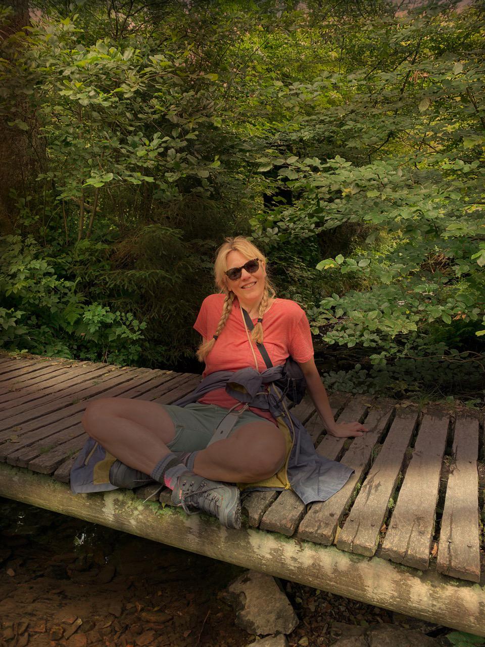 You can linger a while on the bridge and enjoy the view of the stream.