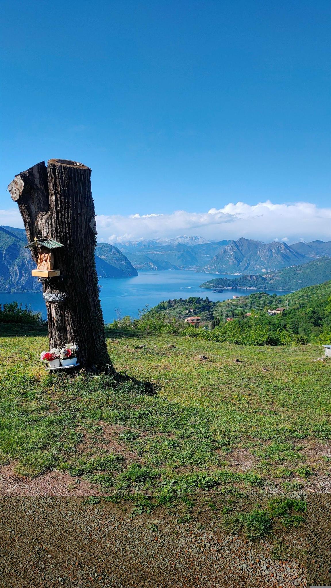 The view from here is breathtaking. It's not worth going all the way to the cross—all you can see is the industrial area of Iseo.