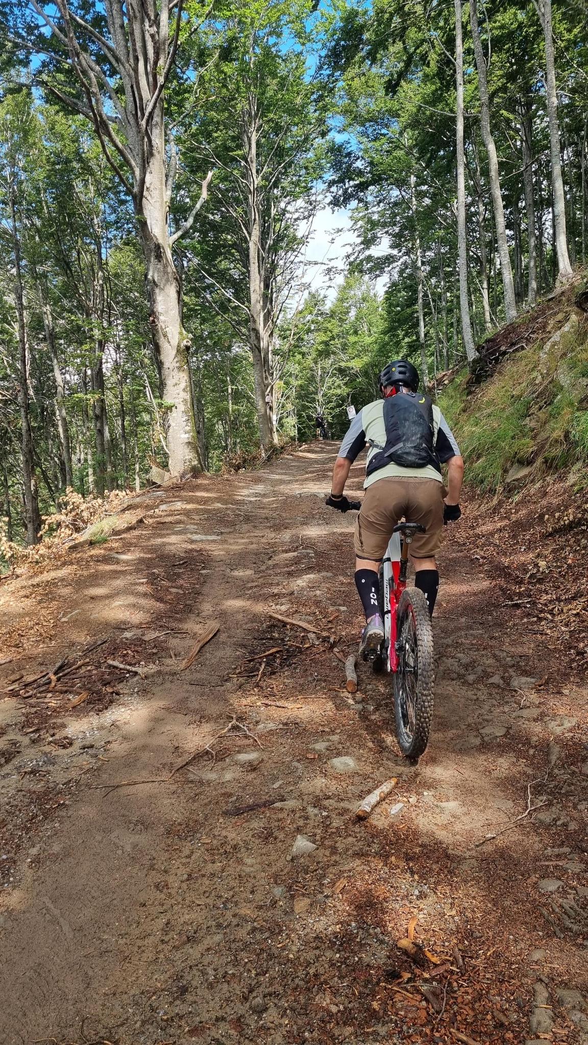 A nice, well-maintained trail of moderate difficulty, but obviously it's all relative. Be careful, there are two drops that have a "slight descent" so you can approach them slowly, but after a left turn with a steeper slope than the rest, there's a drop without a descent.