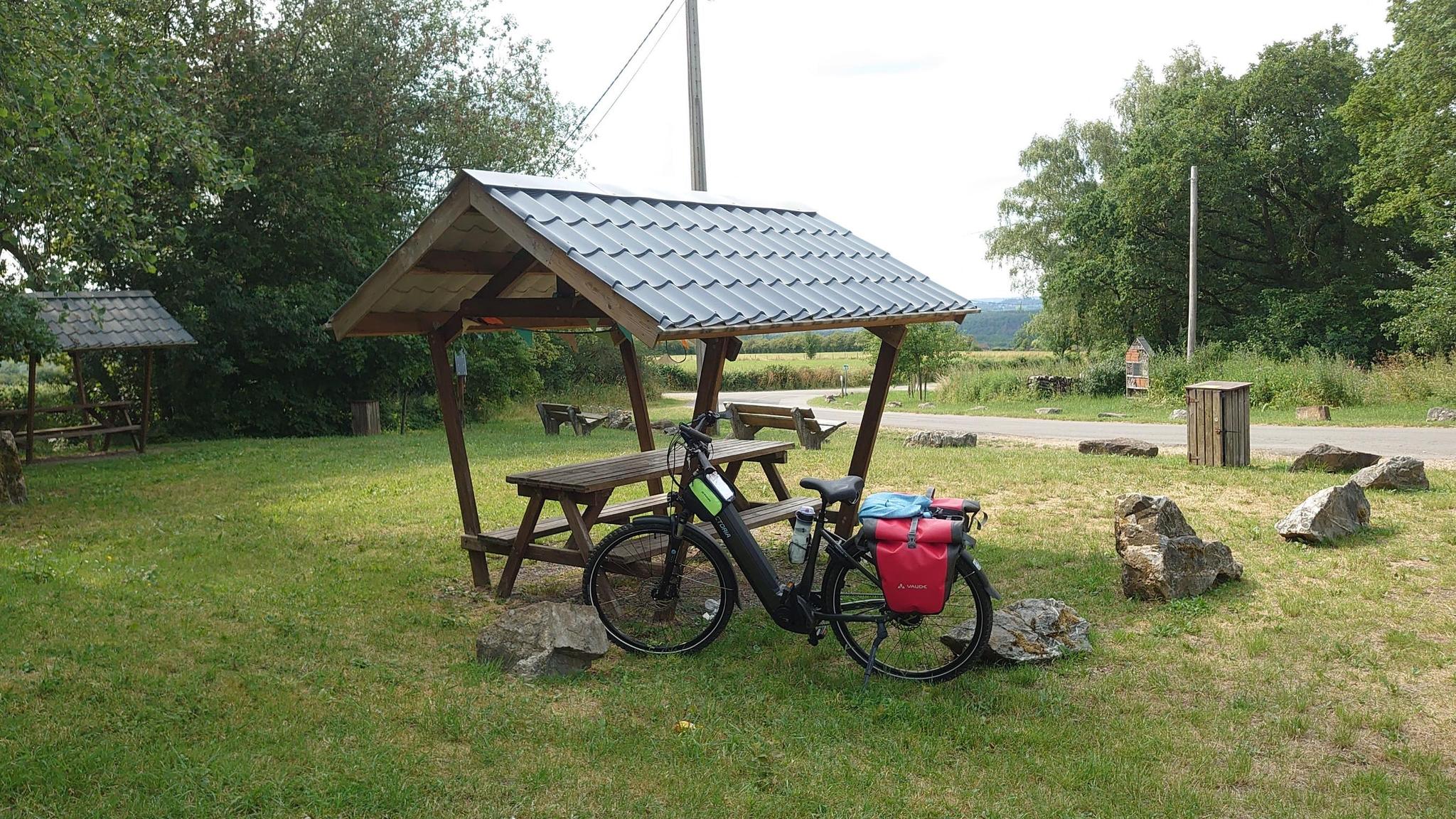 Beautiful bicycle rest area with toilet on the Kyll cycle path