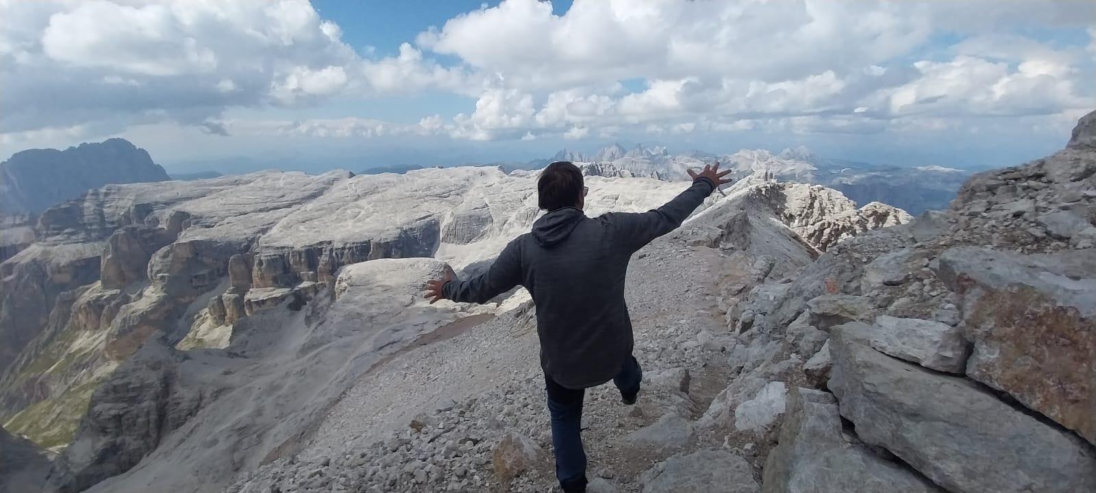 Not too difficult via ferrata in two sections. A full description is at https://www.ferrate365.it/en/vie-ferrate/ferrata-ovest-ultimo-sole-bismantova/, though this is hardly needed here.