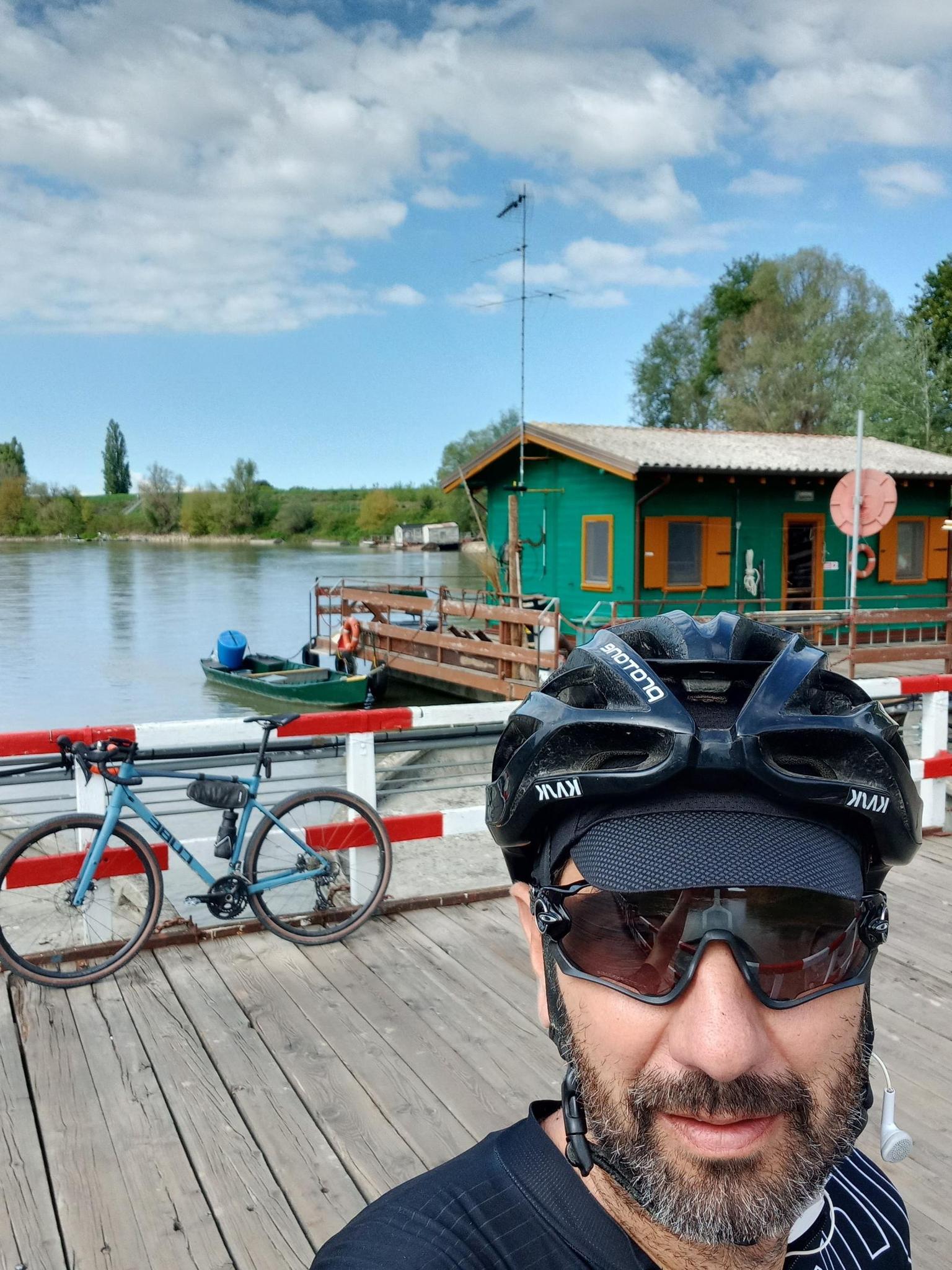 Suggestive pontoon bridge over the Oglio river. An obligatory stop during pedaling in the Mantua area.