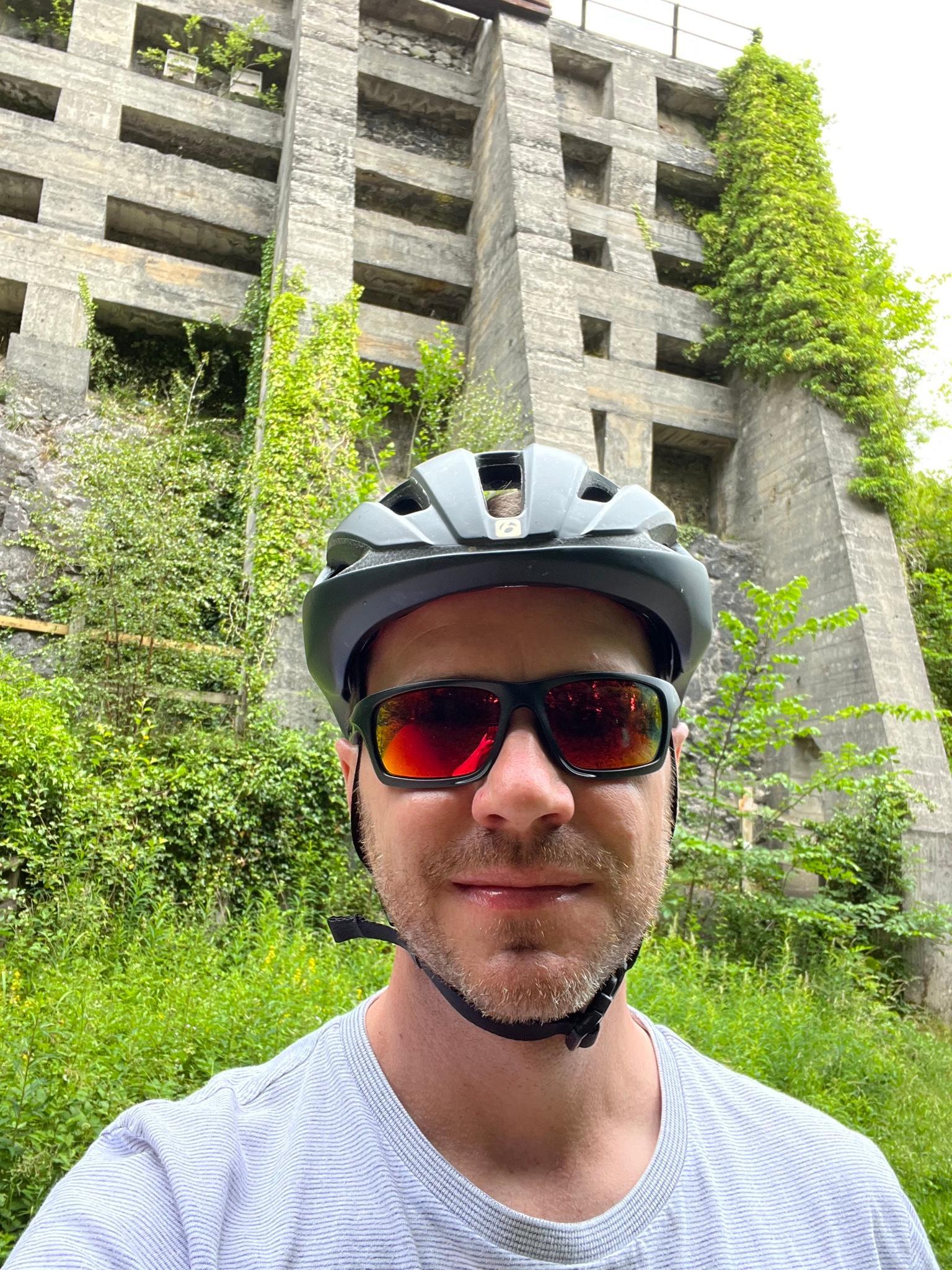 A fabulously good, flat path on a former railway line through the very hilly national park