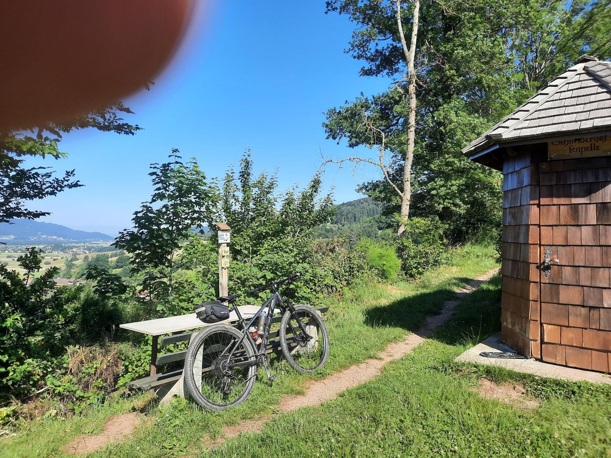 The sign is now quite overgrown. Immediately on the right hand side on the slope, next to the intersection to "Kapellenhöfen".