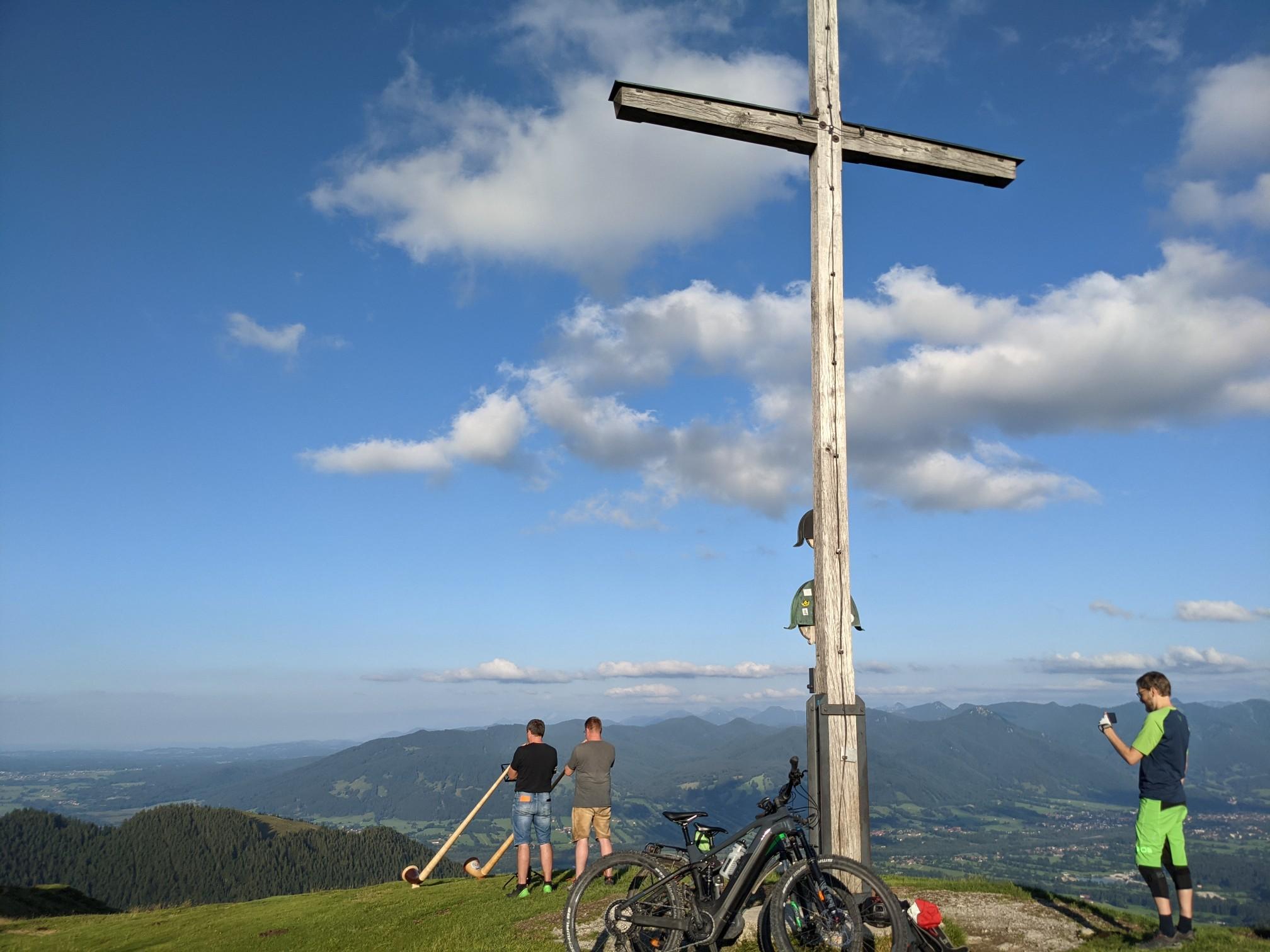A little hidden, but all the more worthwhile! Great view towards the south, Brauneck almost within reach and the Zugspitze in the background. According to legend, a young man was playing the violin up there when he was attacked by a vulture and fell down. As a result, the mountain is known as both Geierstein and Geigerstein ;-)