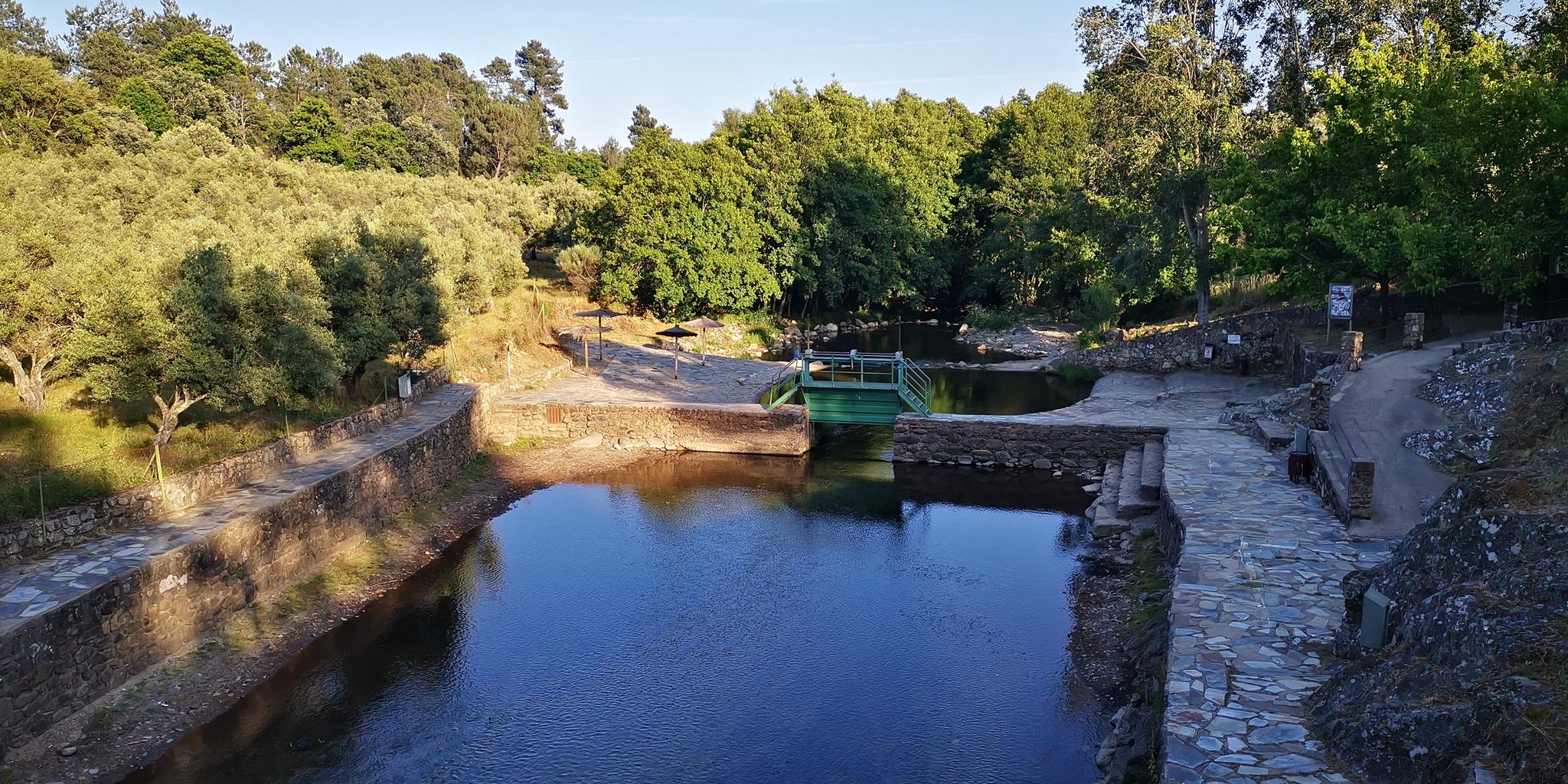 Cilleros의 트레일은 산과 계곡의 기복이 심한 풍경, 밤나무, 참나무, 소나무가 우거진 빽빽한 숲, 그리고 데에사(dehesa) 생태계를 가로지릅니다. 아라고(Árrago) 강을 따라 있는 것과 같은 인상적인 암석 지형과 수정처럼 맑은 자연 수영장 및 수로가 눈에 띄는 특징입니다.