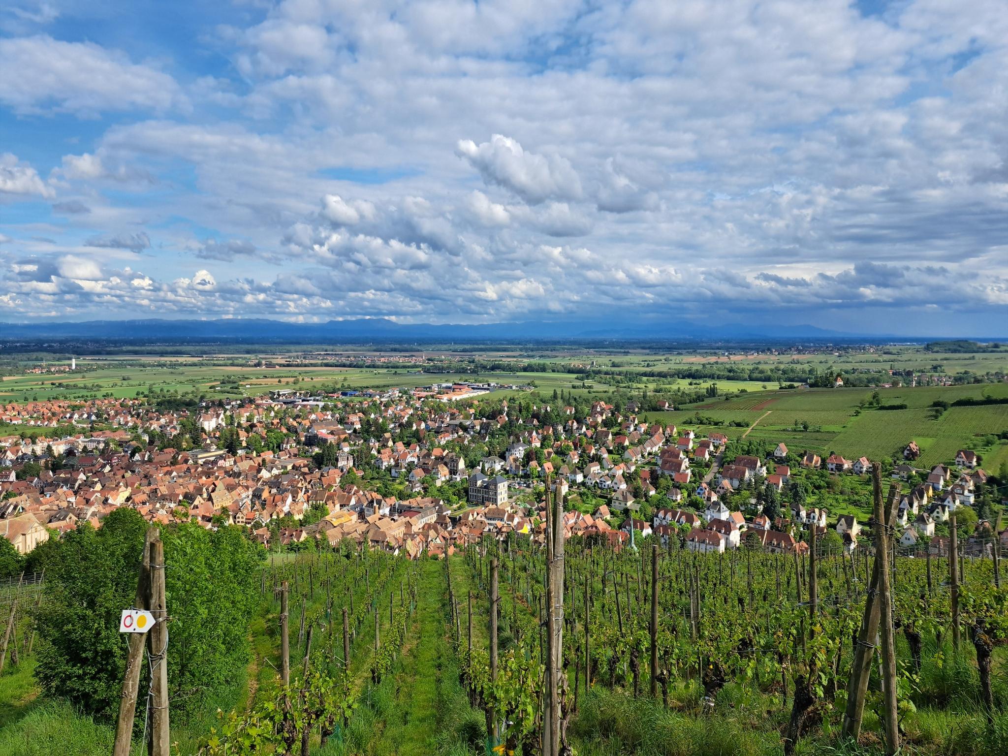 Gertweiler 주변의 지형은 광활한 포도밭 풍경, 완만한 언덕, 그리고 상당한 고도 변화를 특징으로 합니다. 트레일은 종종 Landsberg 성과 Dreistein 성과 같은 역사적인 성을 지나며, Sainte-Odile 산과 같은 주요 봉우리로 오릅니다.