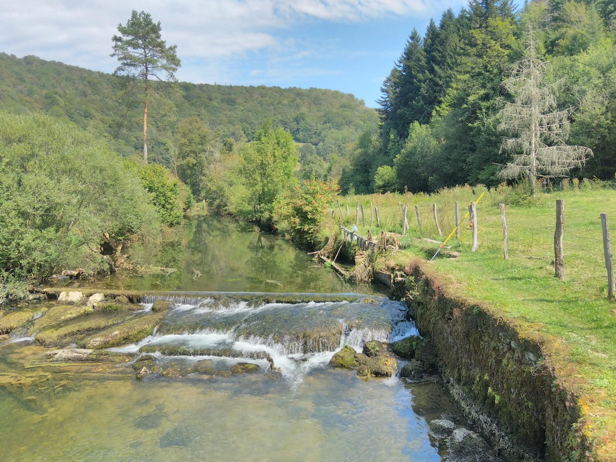 프랑스 동부 두(Doubs) 주에 위치한 클레르발(Clerval)은 쥐라 산맥(Jura Mountains) 속에 자리 잡고 있습니다. 깊은 계곡, 즉 "클루즈(cluse)"를 따라 두 강(Doubs River)이 구불구불 흐르며 주변 숲과 절벽을 비추는 지형적 특징을 가지고 있습니다. 넓게 펼쳐진 풍경은 완만한 언덕, 울창한 숲, 독특한 석회암 지형으로 이루어져 있어 다양한 야외 활동을 즐기기에 좋습니다. 이곳에서는 그래블 바이킹, 하이킹, 투어링 사이클링, 로드 사이클링 등 여러 스포츠를 즐길 수 있습니다.