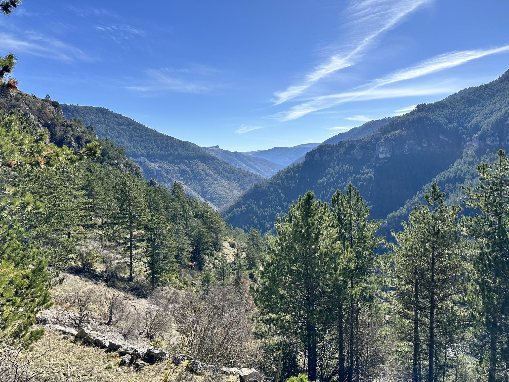Sainte-Enimie의 트레일에서는 극적인 절벽과 깊은 협곡이 있는 Gorges du Tarn의 전망을 제공합니다. 주변의 Causses Méjean과 Sauveterre 고원은 탁 트인 풍경을 제공합니다. 청록색 Burle 샘은 이 지역의 또 다른 주목할 만한 자연 명소입니다.
