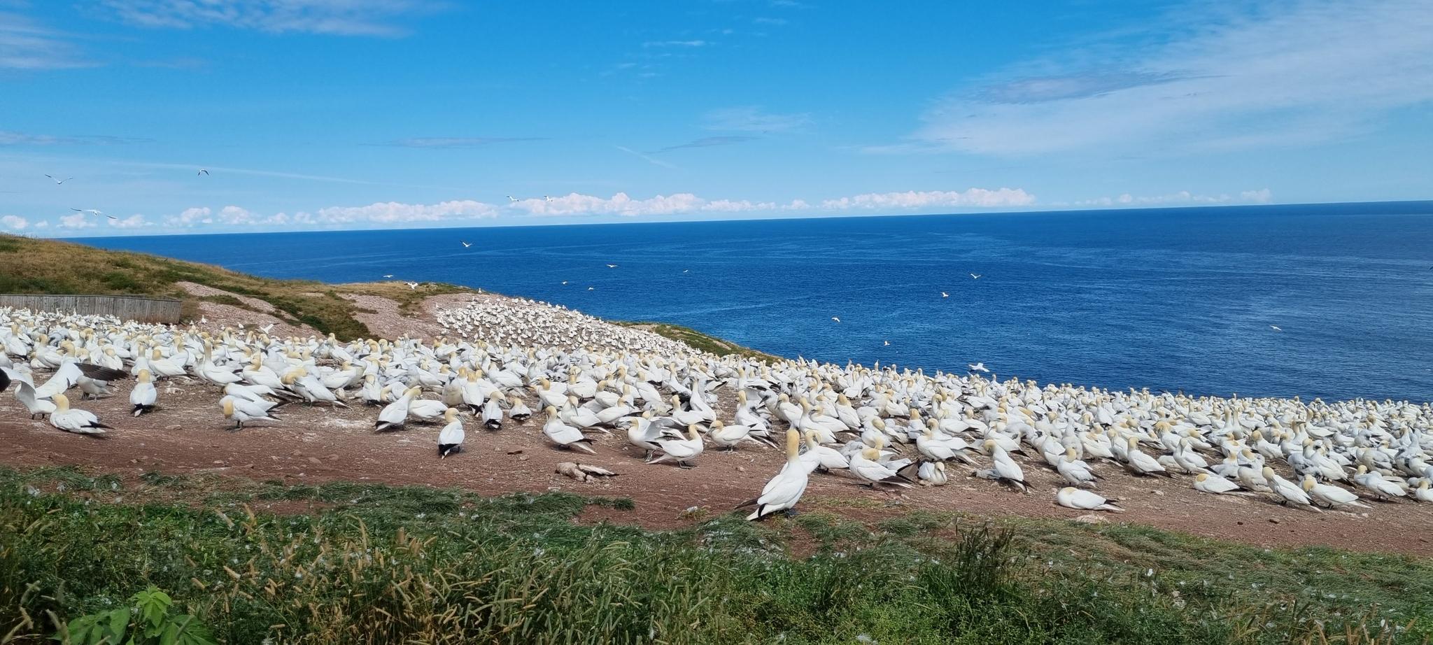 보나방튀르 섬은 북아메리카에서 가장 큰 북방가마우지 군락 중 하나로, 10만 마리 이상의 새들이 서식하는 중요한 조류 보호구역입니다. 이 섬은 다양한 바닷새 종과 회색 및 검은색 물범을 관찰할 수 있는 하이킹 코스를 제공합니다.