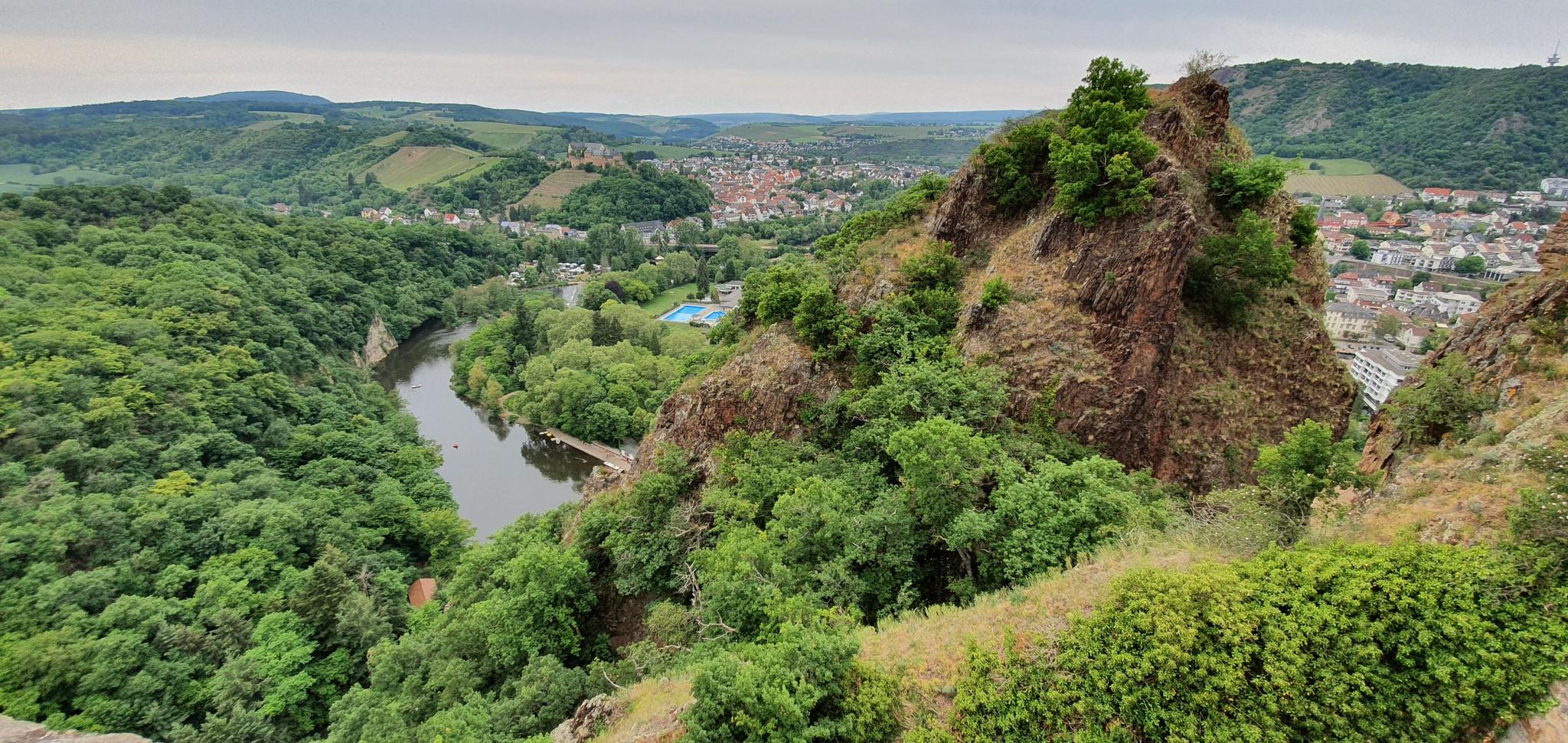 이 지역에는 Rheingrafenstein 및 Rotenfels와 같은 극적인 암석 지형이 있습니다. Rotenfels는 알프스와 스칸디나비아 사이에서 가장 높은 암벽으로 알려져 있습니다. Nahe 계곡과 광대한 포도밭 또한 이 지역의 풍경을 특징짓습니다.