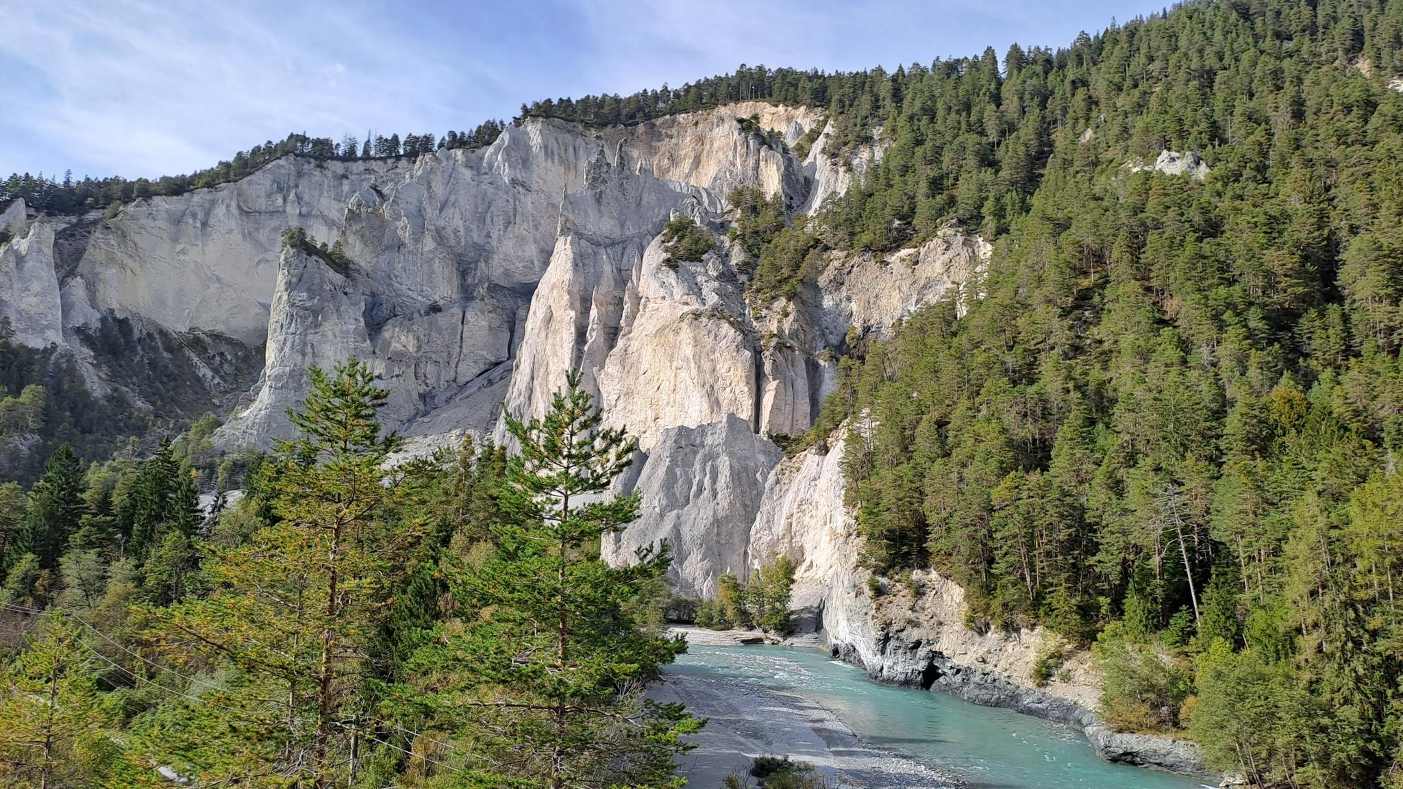 Ruinaulta라고도 알려진 라인 협곡은 종종 '스위스 그랜드 캐년'이라고 불리는 인상적인 깊은 협곡입니다. 약 10,000년 전 대규모 산사태 이후 형성되었습니다. 'Il Spir'와 같은 전망대는 극적인 절벽과 아래의 라인 강을 광범위하게 조망할 수 있습니다.