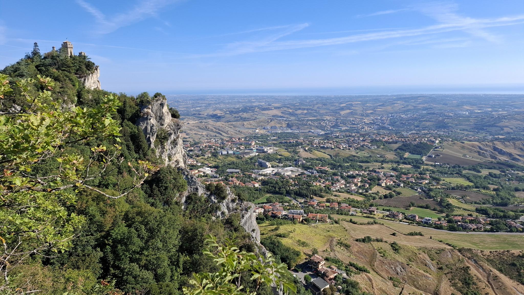 산마리노의 주요 자연 지형인 티타노 산은 2,424피트(739미터)의 고도에 이릅니다. 석회암 덩어리인 이 산은 유네스코 세계 문화유산이며 정상에서 탁 트인 전망을 제공합니다.