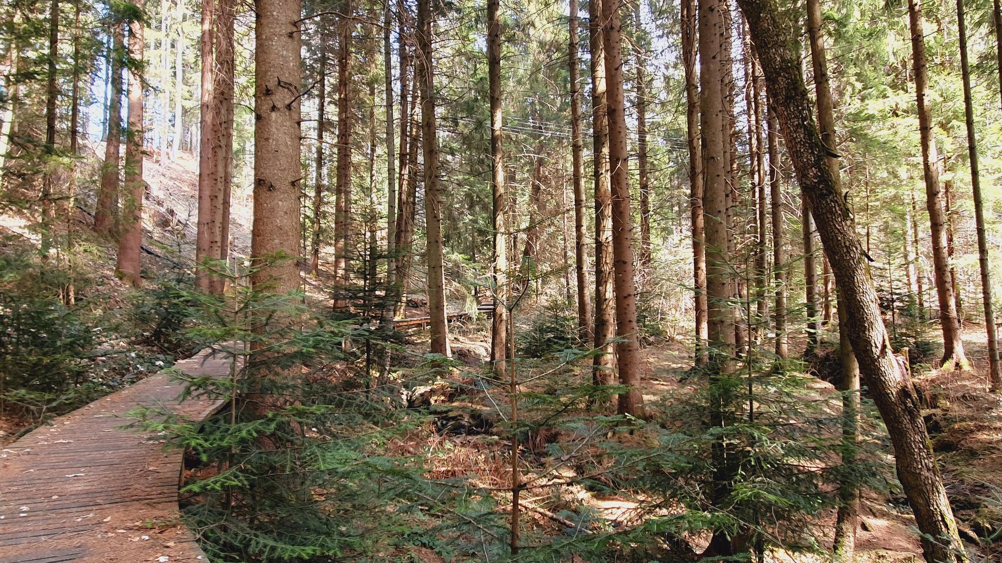 주요 명소는 해발 약 3,900피트(1,200미터)에 위치한 Wildwiese입니다. 이곳에는 98피트(30미터) 높이의 전망대가 있어 탁 트인 전경을 제공합니다. "Wasserweg"는 또한 자연적인 수경과 유서 깊은 Hornschmiedmühle를 강조합니다.