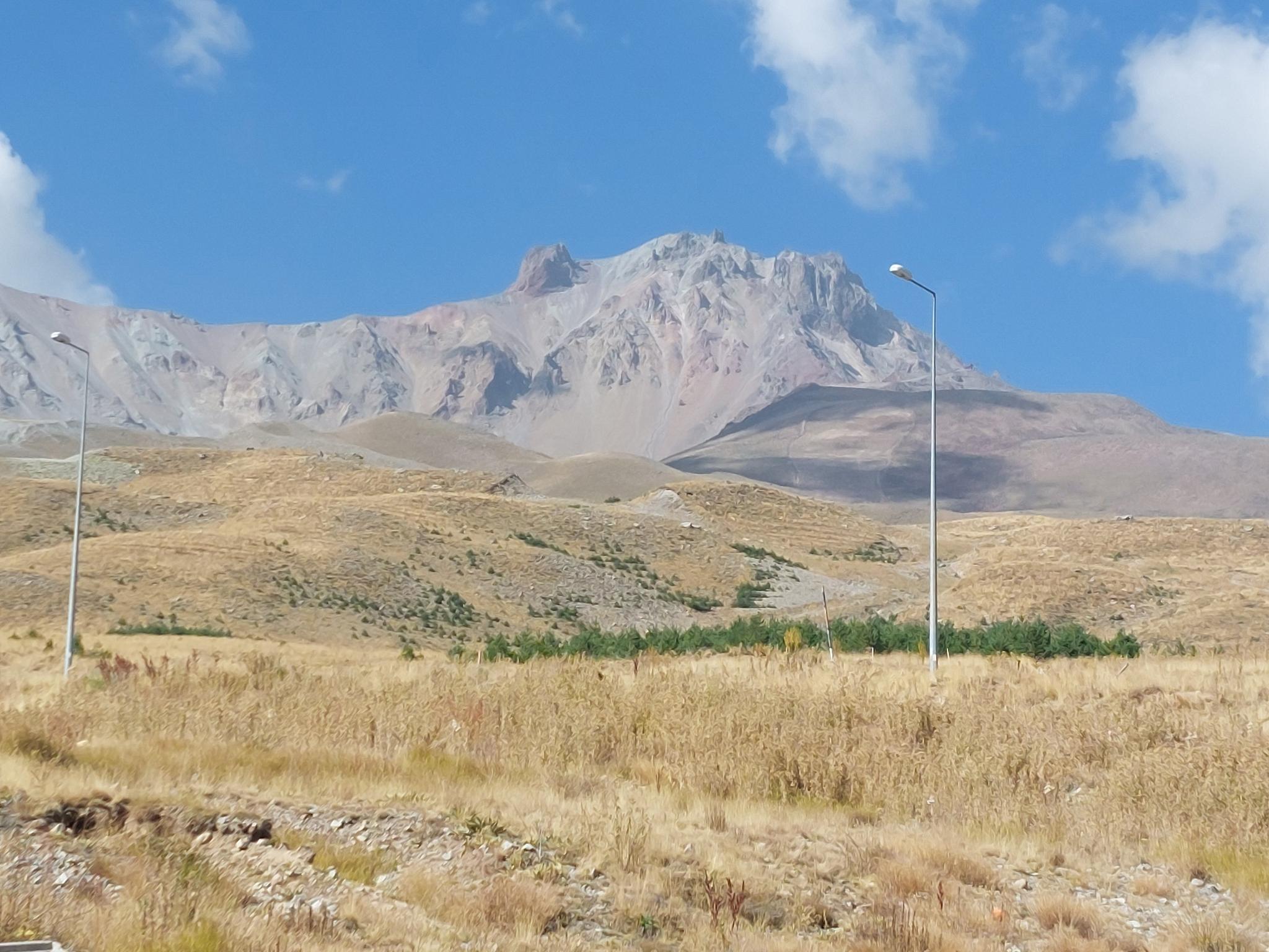 에르지야스 산은 터키 중앙 아나톨리아에 위치한 휴화산 성층 화산입니다. 이 지역에서 가장 높은 봉우리로, 해발 3,917m에 달합니다. 이 지역은 화산 원뿔, 용암 돔, 화산재 퇴적물과 같은 독특한 지질 구조를 특징으로 합니다.