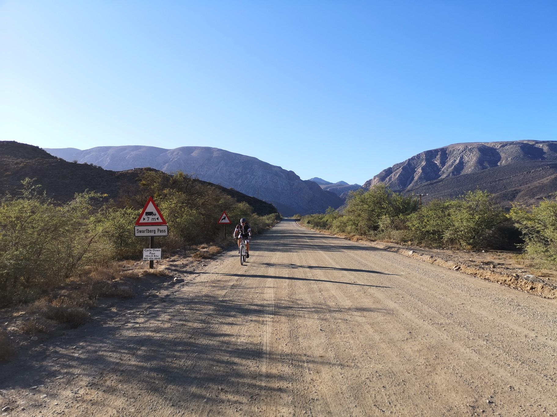사이클링 경로, 특히 Swartberg Pass는 비포장 도로를 특징으로 하며 상당한 고도 변화로 인해 도전적일 수 있습니다. 경로는 다양한 풍경을 가로지르며 힘든 오르막길부터 내리막길까지 난이도가 다양합니다.