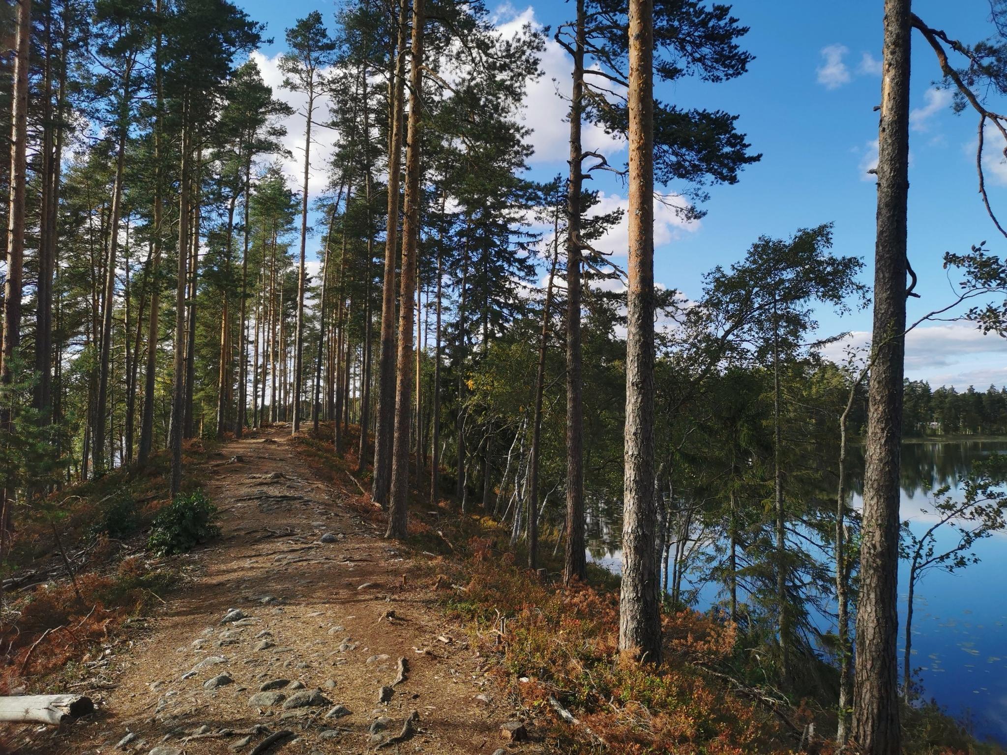 인기 있는 하이킹 코스에는 Häme Lynx Trail (약 4km), Pohjantikka Trail (약 6.6km), Peukaloinen Trail (약 4.1km)이 있습니다. 이 코스들은 오래된 숲부터 호숫가까지 다양한 풍경을 제공합니다.