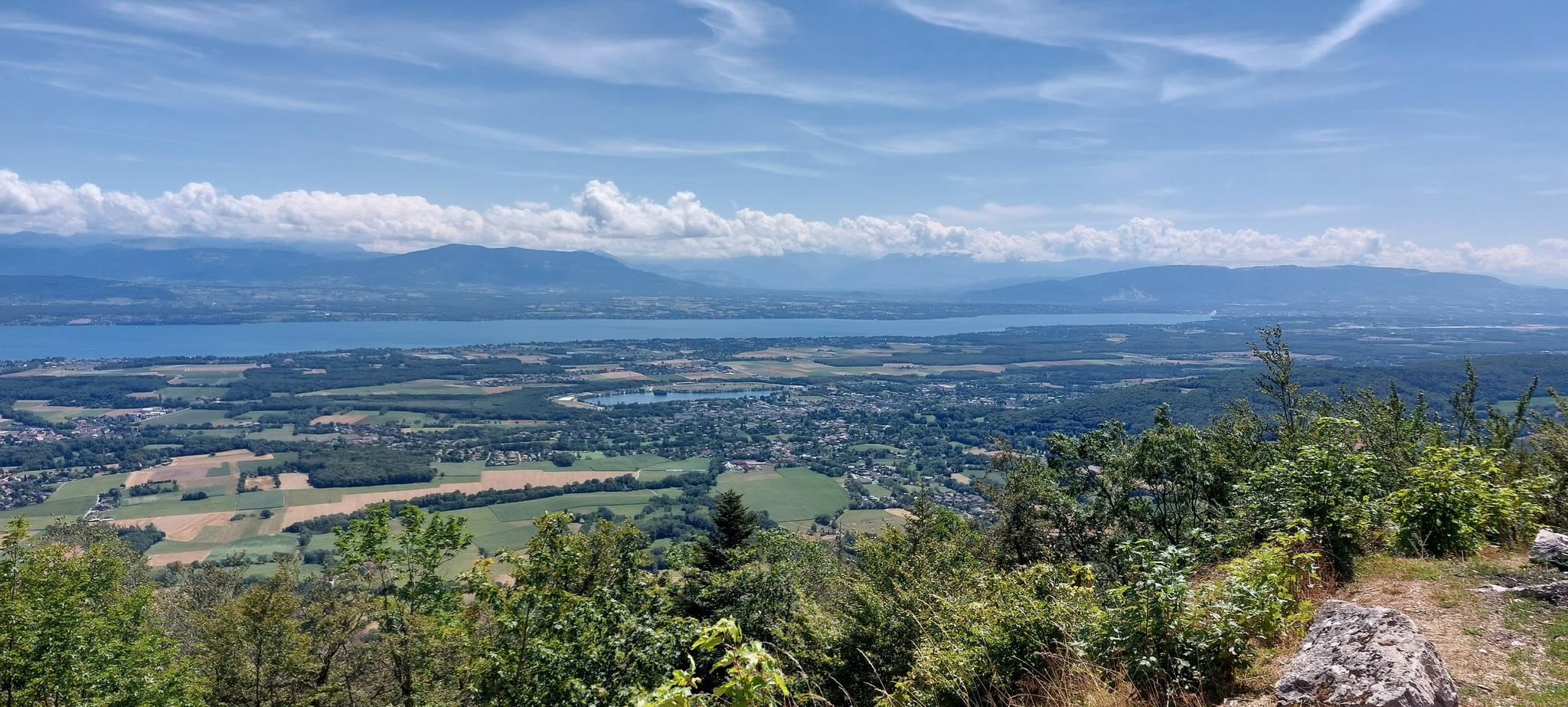 Lac de Divonne는 지하 샘물로 채워진 45헥타르 규모의 인공 호수입니다. 쥐라 산맥 기슭에 위치하며 알프스와 몽블랑의 전망을 제공합니다. 이 지역에는 숲, 목초지, 그리고 Marais des Bidonnes와 같은 습지가 포함됩니다.