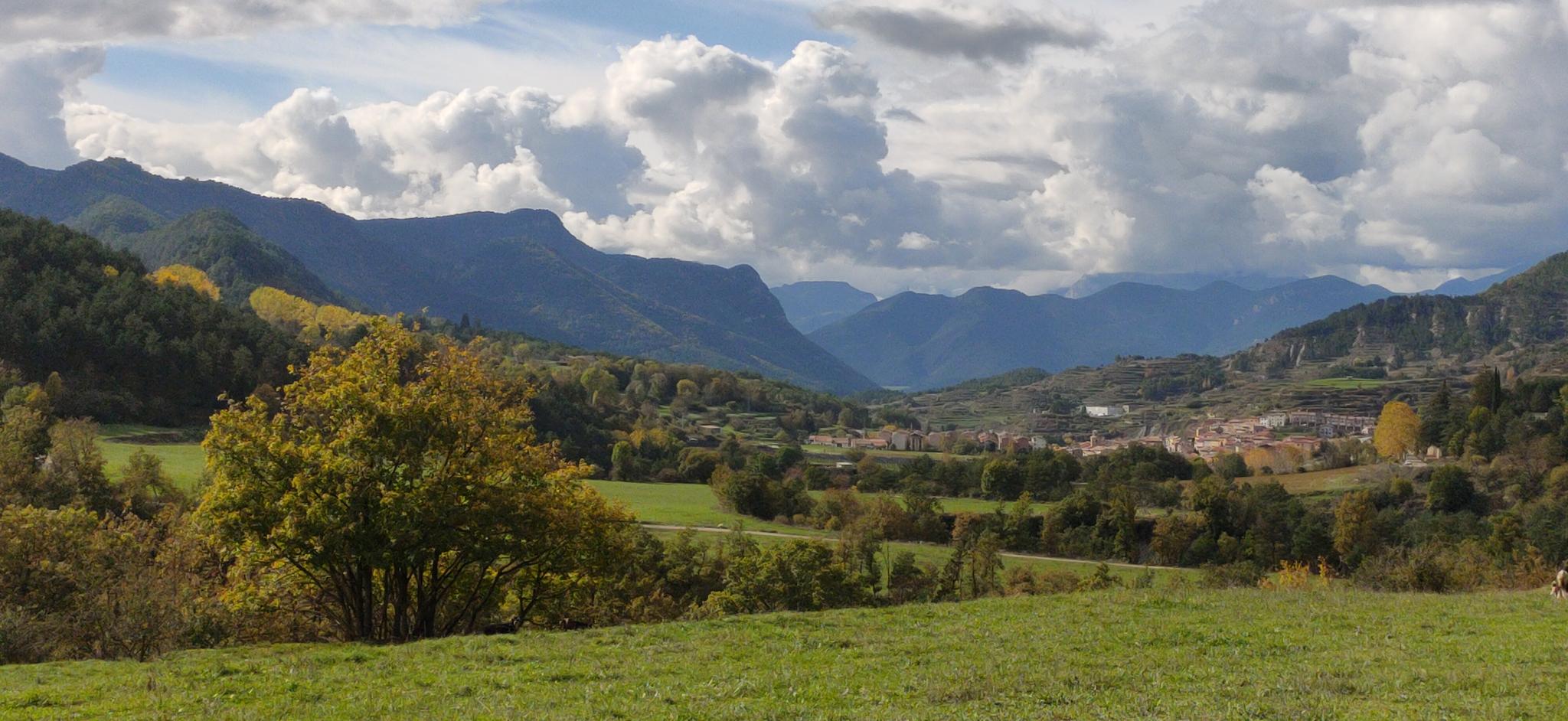 주요 자연 특징은 Pantà de la Baells 저수지 자체로, 푸른 언덕과 울창한 숲으로 둘러싸인 인공 호수입니다. 주목할 만한 랜드마크는 102미터 높이의 웅장한 댐입니다. 이 지역은 Catllaràs, Figuerassa, Arades의 피레네 산맥 기슭에 위치해 있습니다.