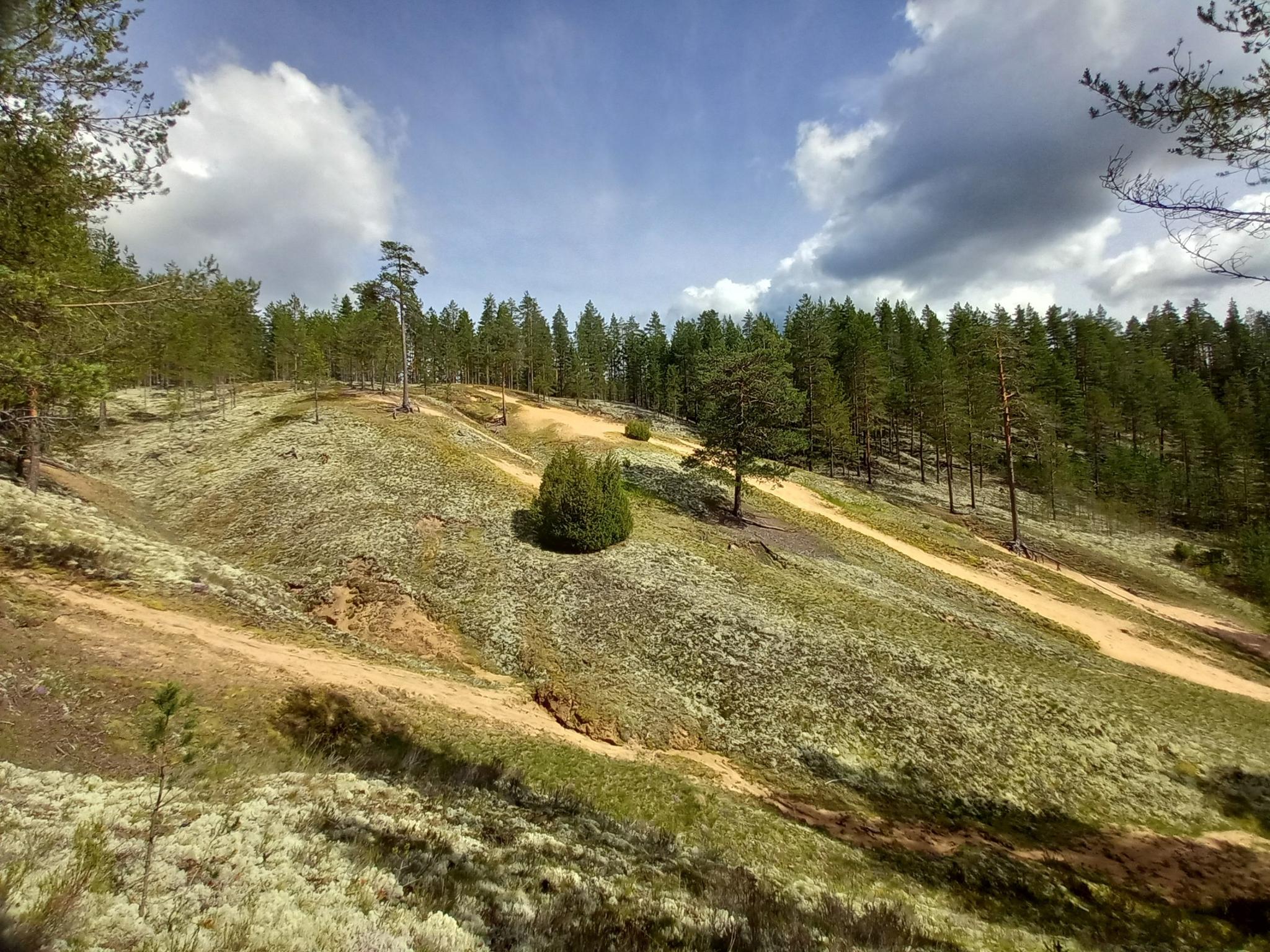 Ahmasjärvi의 하이킹 지형은 경작지 사이의 완만하고 쉬운 산책로부터 더 도전적인 트레킹까지 다양합니다. Ahmavaara 자연 보호구역 내의 광활한 모래 지역, 습지, 숲, 험준한 절벽을 포함합니다. 이러한 다양성은 다양한 하이킹 선호도와 기술 수준을 충족시킵니다.