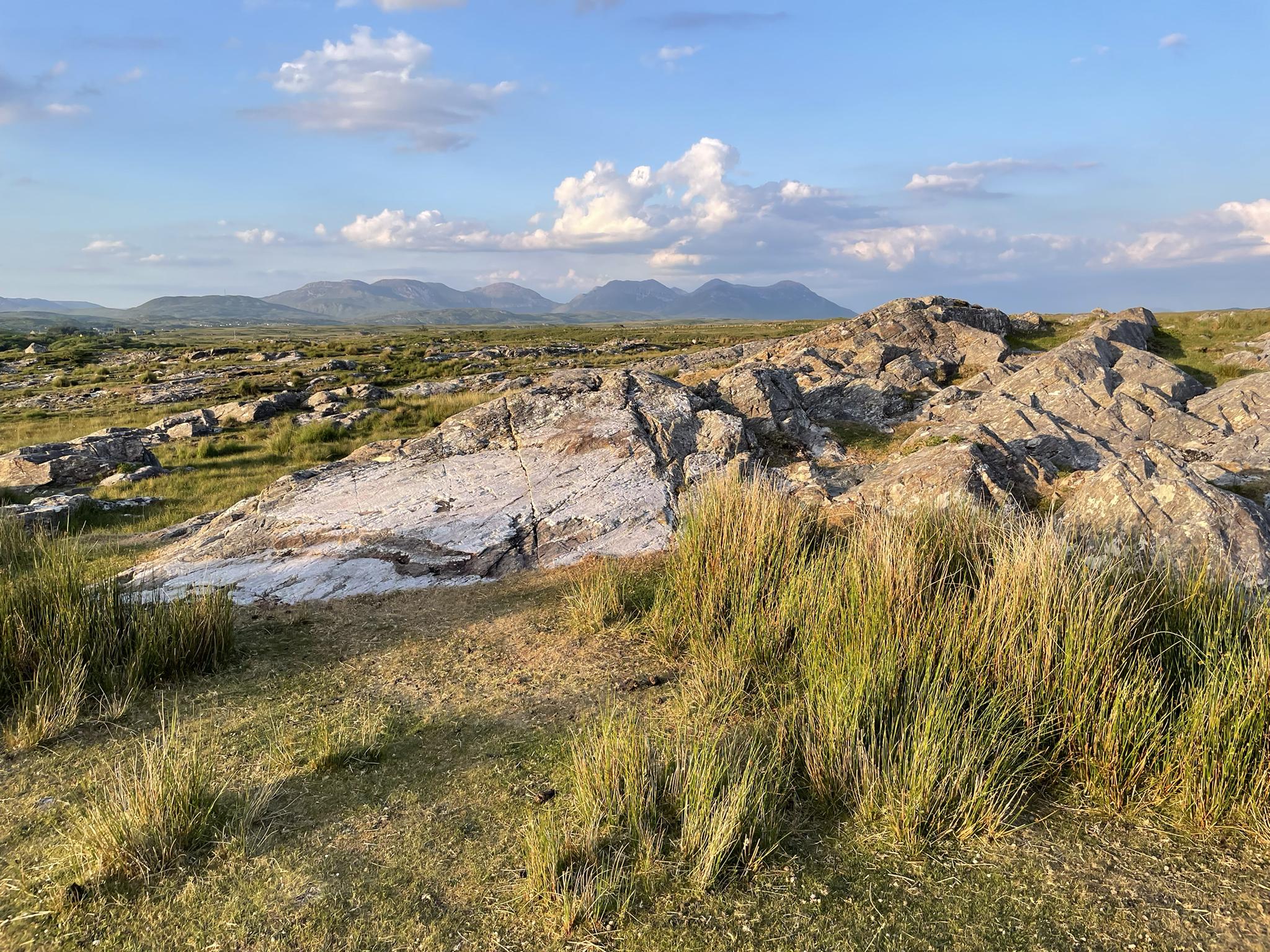 이 지역은 호수, 광활한 이탄지, 담요 습지로 특징지어지며, Twelve Bens 및 Maumturk 산맥의 경치를 볼 수 있습니다. 중요한 랜드마크는 성 패트릭에게 헌정된 작은 예배당, 성스러운 우물, 돌 원형을 포함하는 Máméan 순례길입니다. 이 지역의 지질은 규암, 대리석, 편암 암석으로 이루어져 있습니다.