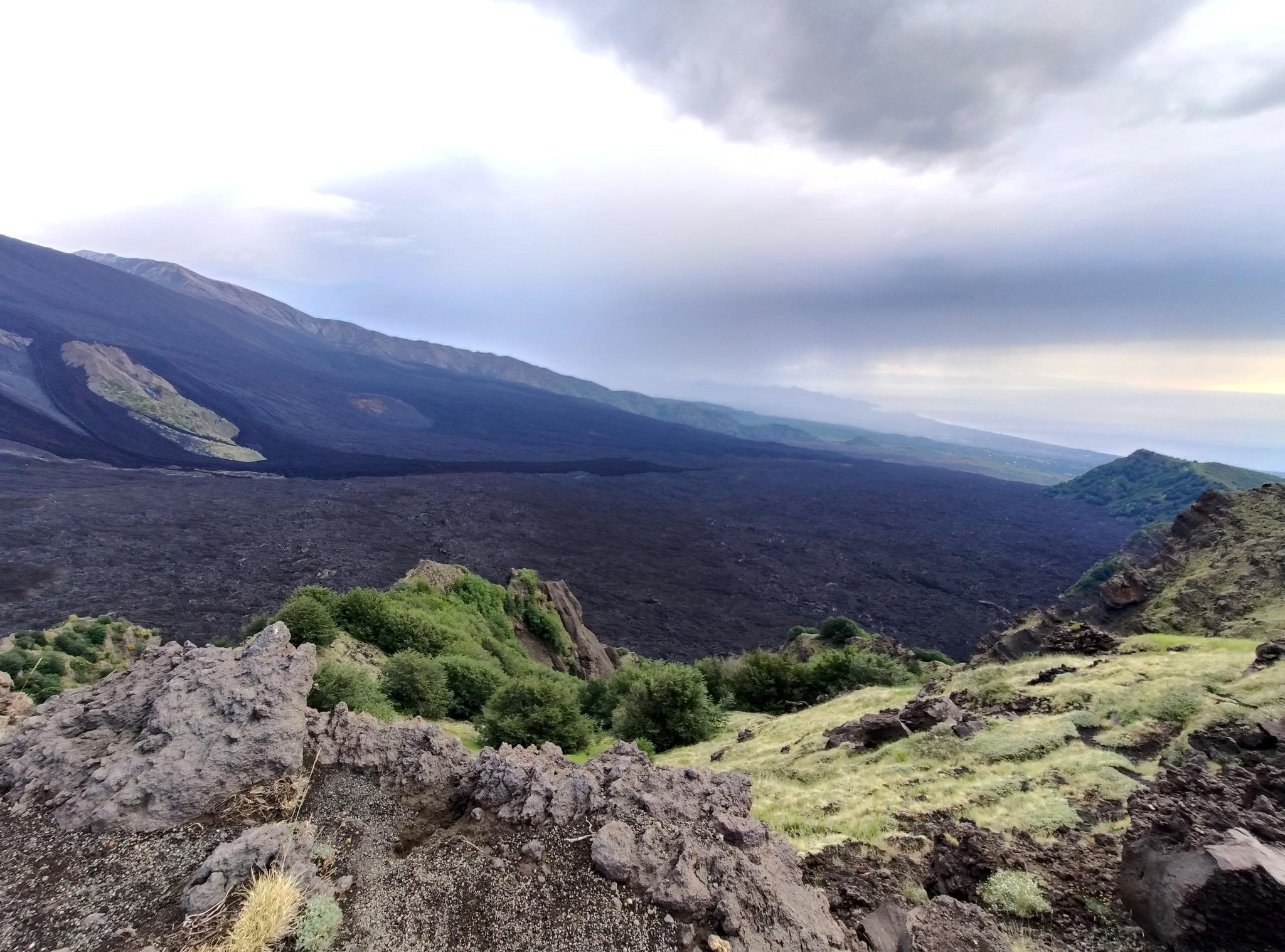 Valle del Bove는 에트나 산 동쪽 측면에 위치한 거대한 말굽 모양의 분지입니다. 고대 용암류로 형성된 거칠고 달과 같은 풍경이 특징입니다. 이 자연 경관은 극적인 파노라마 전망을 제공하며, 이 지역의 하이커들에게 중요한 관심 지점입니다.