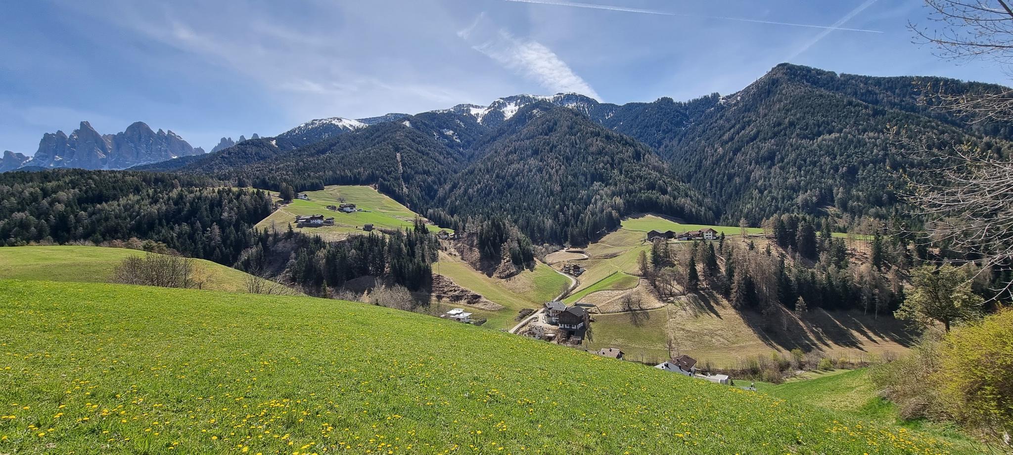 Lajen - Laion에서는 유네스코 세계 문화유산인 돌로미테의 경치를 감상할 수 있으며, 페이틀러코펠(Peitlerkofel), 가이슬러슈피첸(Geislerspitzen), 슐레른(Schlern), 랑크코펠(Langkofel), 플라트코펠(Plattkofel)과 같은 주요 봉우리가 포함됩니다. 풍경은 포도밭에서 밤나무 숲, 고산 목초지, 바위 지형으로 바뀝니다. 알페 디 시우시(Alpe di Siusi) 고원도 근처에 있습니다.