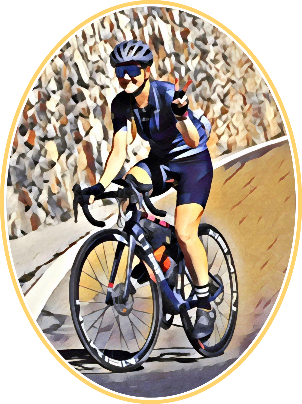 보통 도로 자전거 타기. 좋은 체력 필요. 지면 대부분이 잘 포장되어 있고 라이딩하기 쉬움.