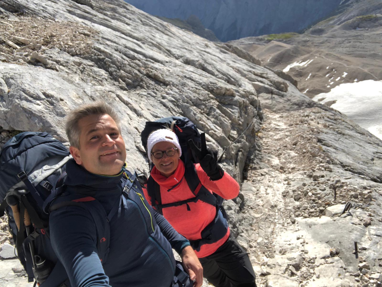 If you extend the hiking trail straight into the distance, you will see the impressive flank of the Esclop peak... The next day you will pass it very close